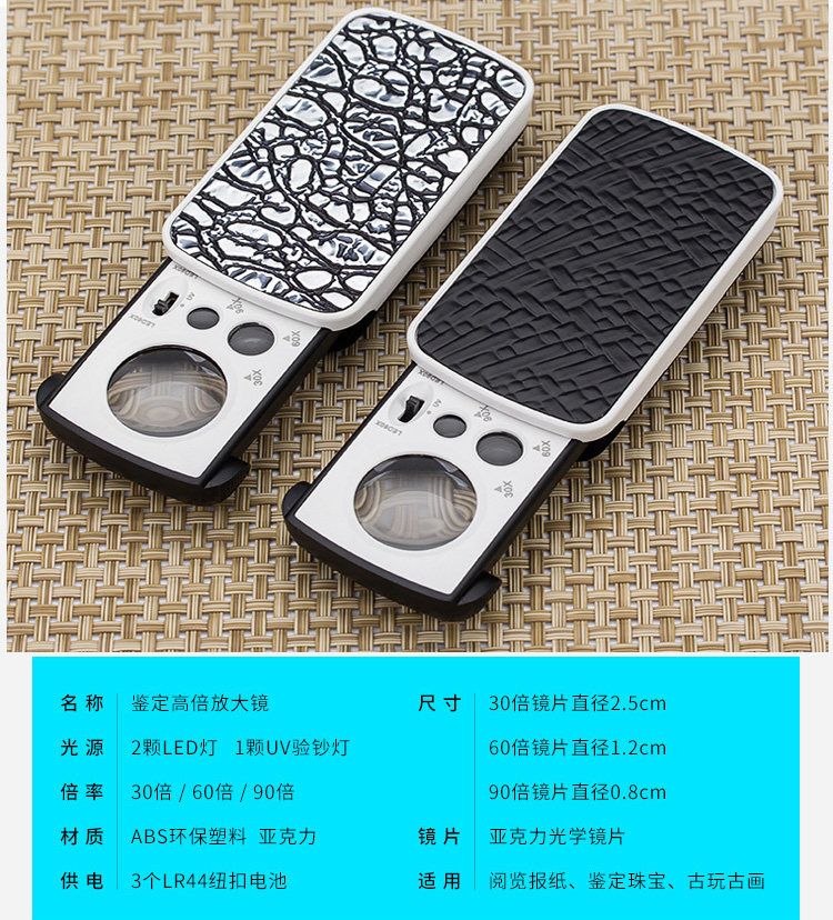 Портативная лупа с подсветкой для пожилых людей, чтение, бриллиантовое ювелирное украшение, фарфоровые монеты, марки, увеличение в 60 раз