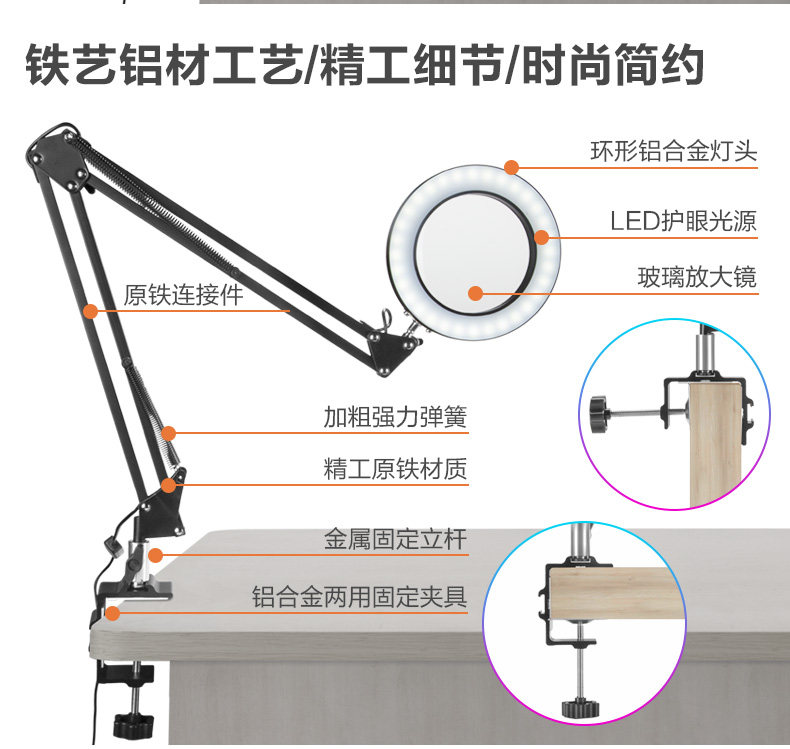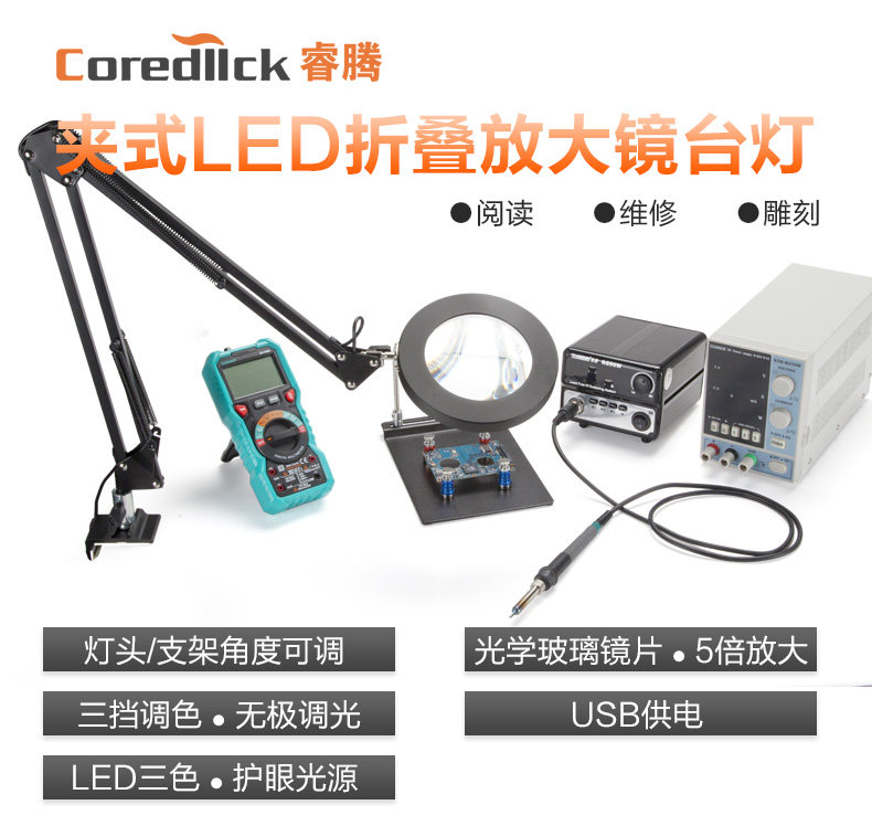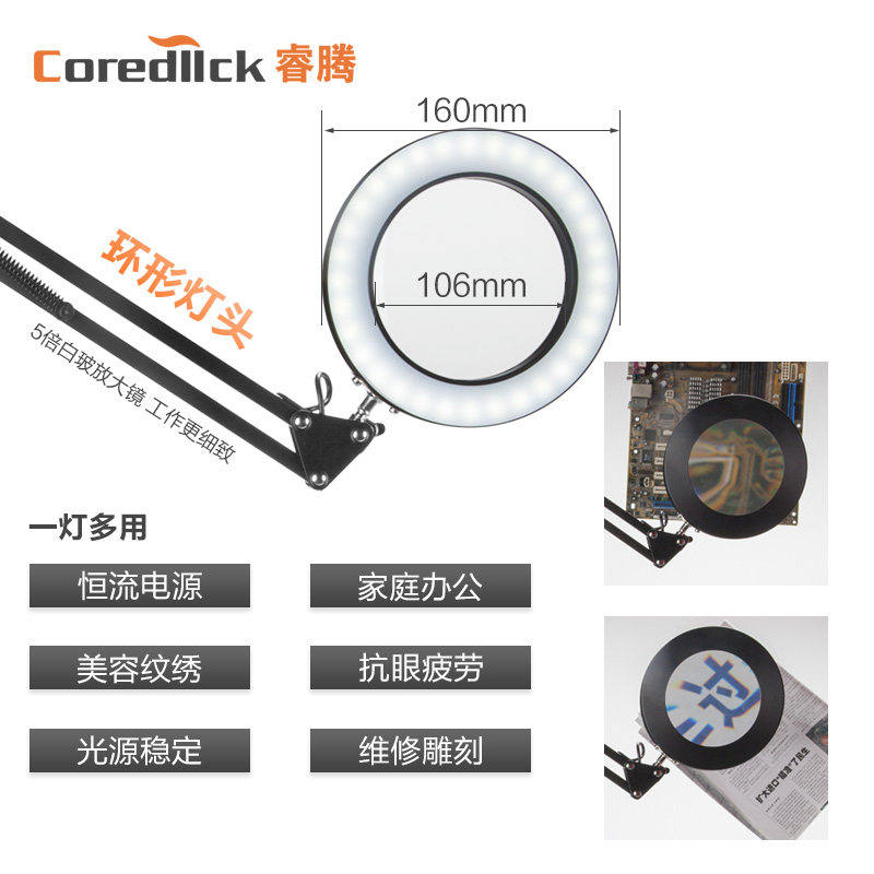 Coredlllck Ruiteng Table Crainting Mirror Lens с яркостью светодиодного света может быть отрегулирована высокооборудованием для высокопоставленных скульптурных скульптурных часов мобильные электронные сварки