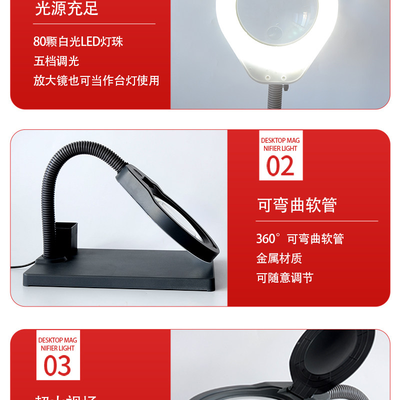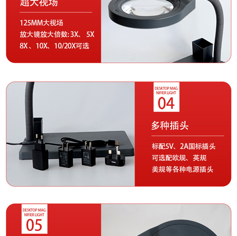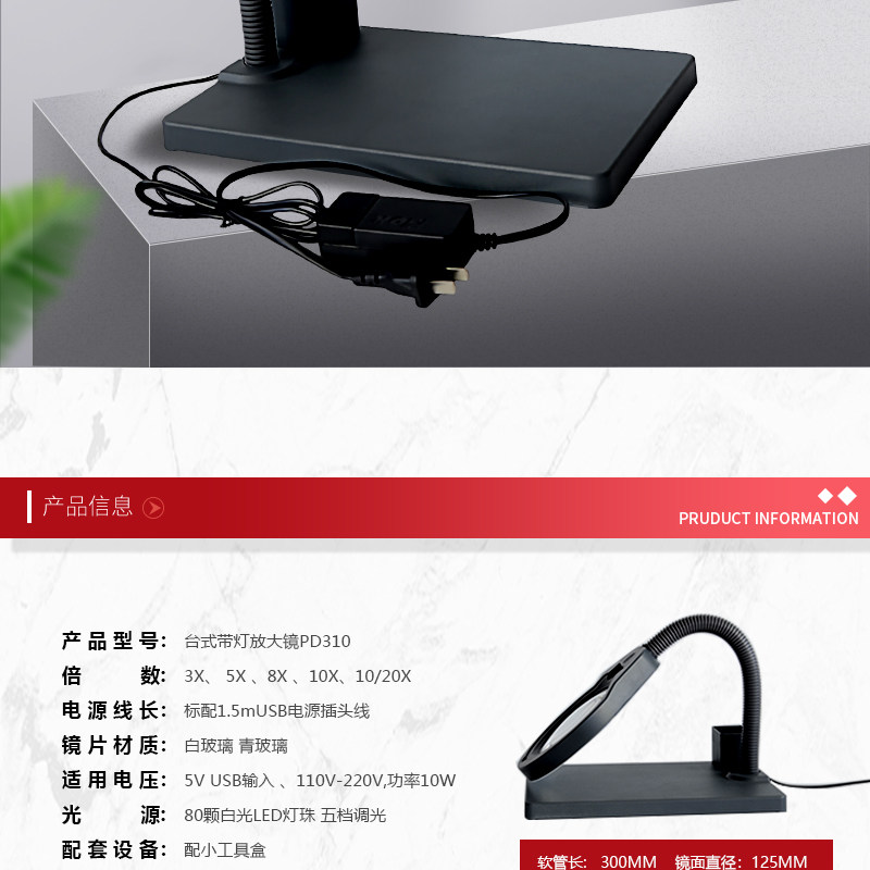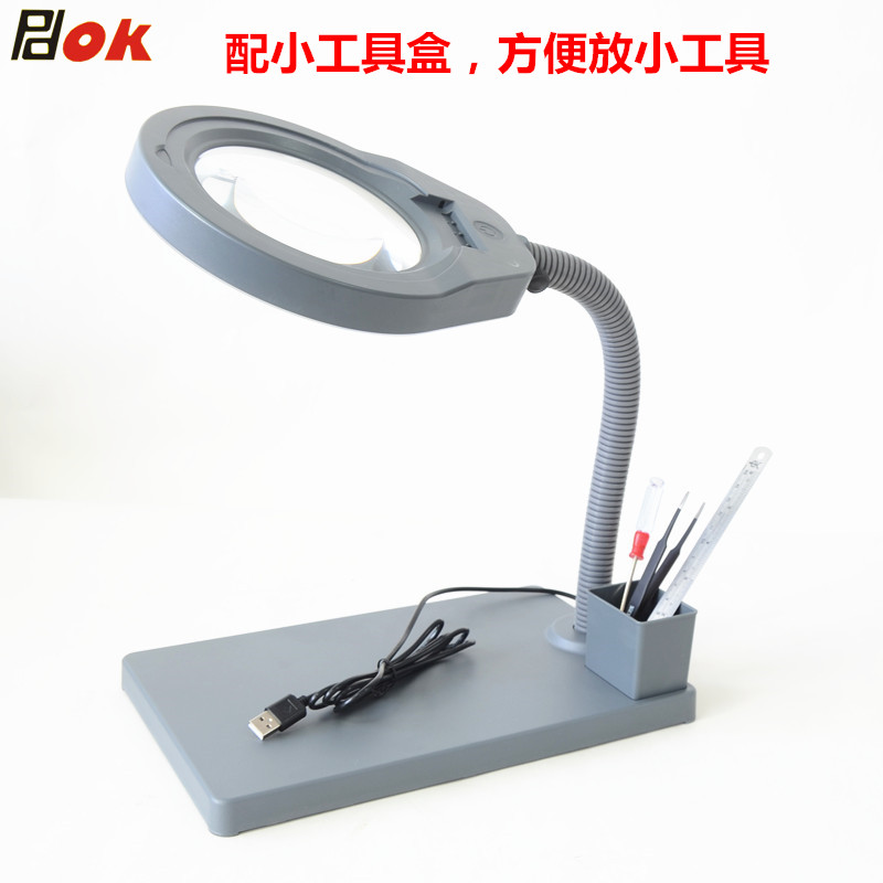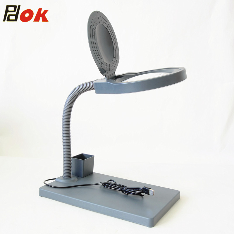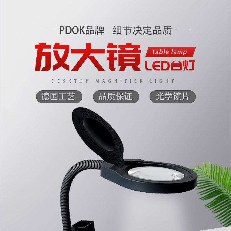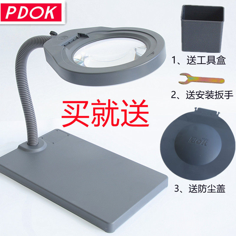 PDOK Светодиодная лупа, настольная лампа, съемная пылезащитная крышка, стеклянный объектив, чтение для пожилых людей, ювелирное украшение из нефрита, оптика