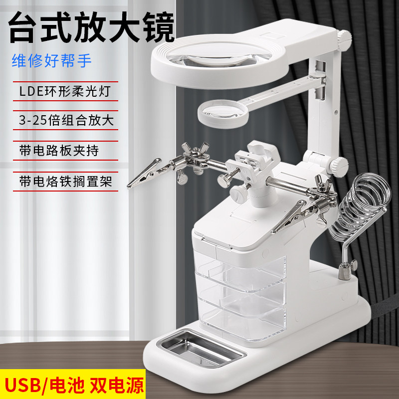 Трубка, лупа, лампа, мобильный телефон, верстак, увеличение в 29 раз