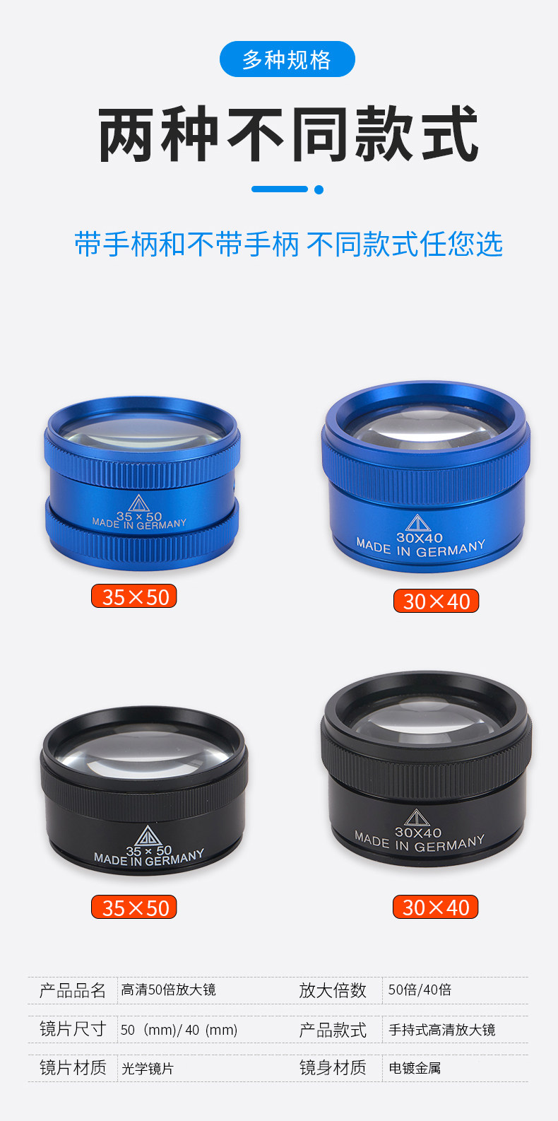 Портативная лупа, портативное чтение, увеличение в 50 раз, Германия, увеличение в 30 раз