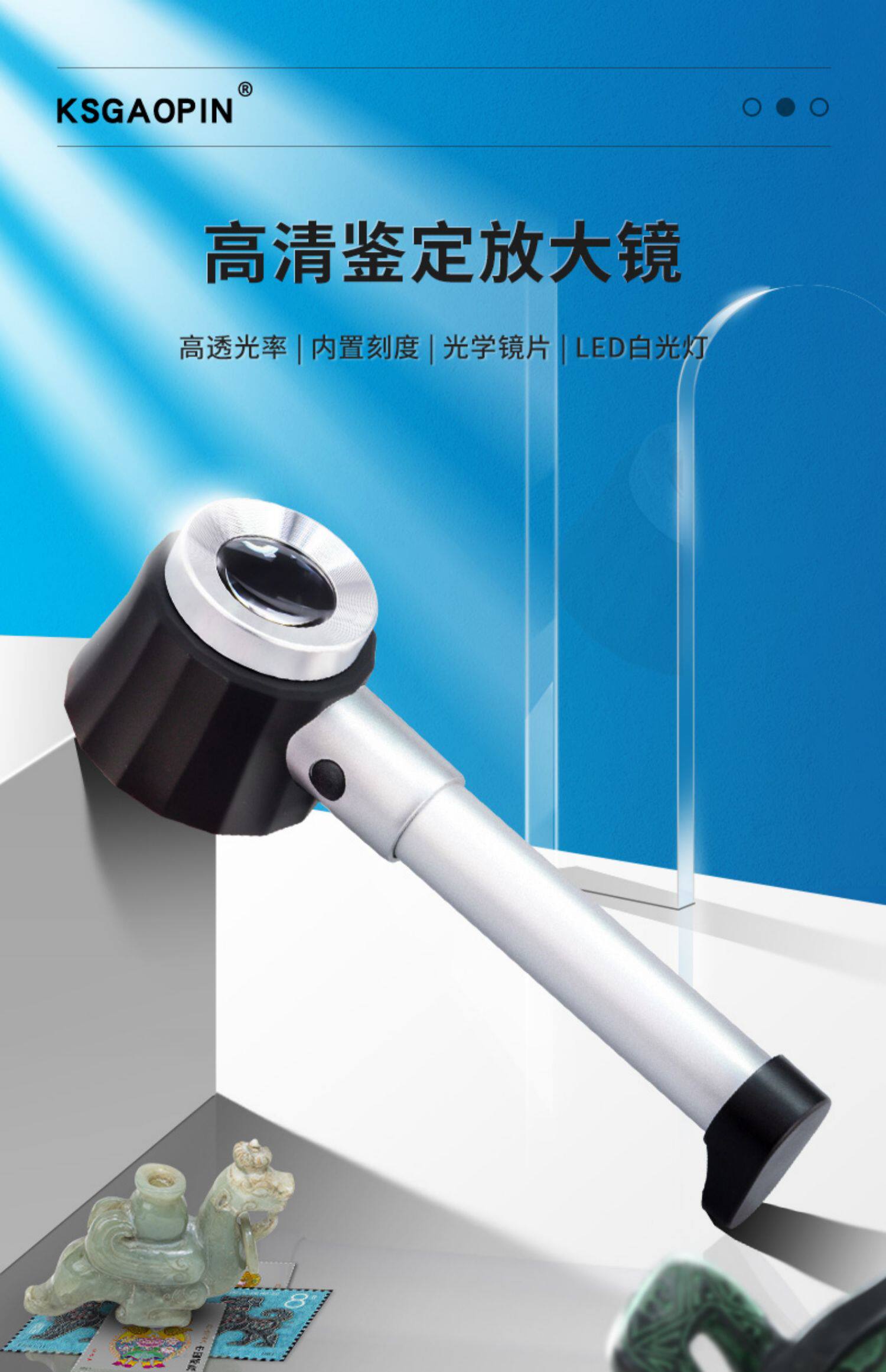 GAOPIN Портативная лупа с подсветкой, монеты, марки, бриллиантовое ювелирное украшение из нефрита, портативное зеркало, увеличение в 10 раз, с драгоценным камнем
