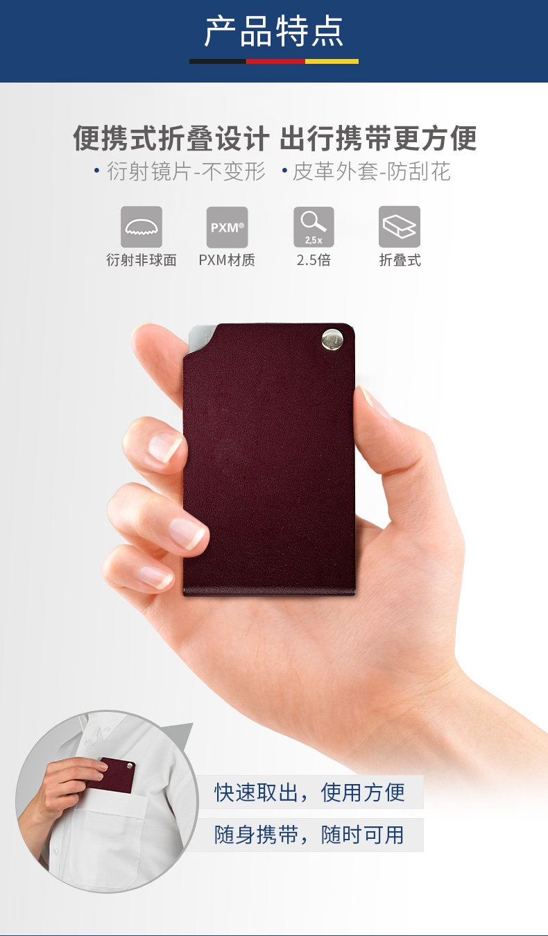 Складные карточки, портативный чехол, чтение, лупа, Германия, увеличение в 5 раз