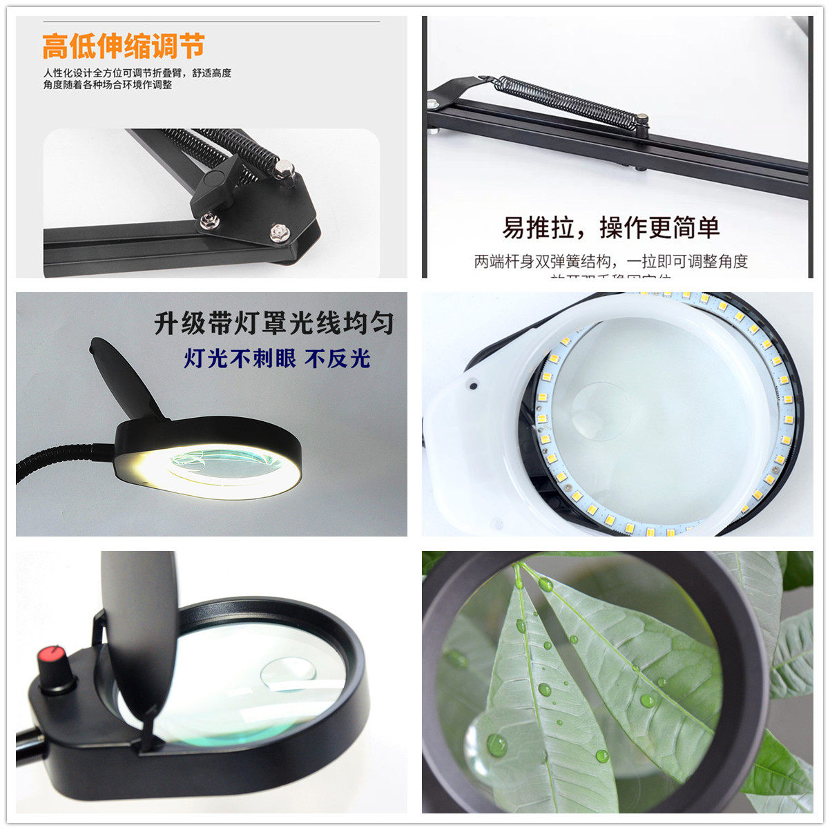 Светодиодная регулируемая лупа, универсальная трубка, светильник, чтение