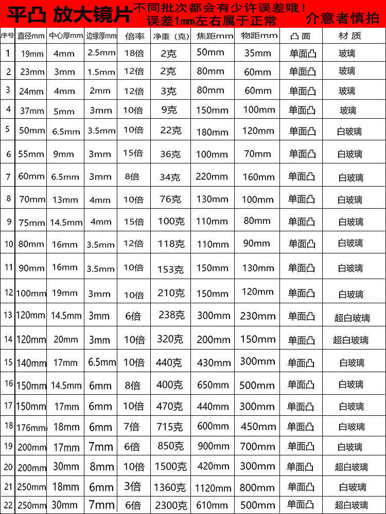 Высокоопределение стеклянное плоское выпуклое зеркало с большим диаметром увеличивающаяся линза Одиночный выпуклый 10x выпуклый выпуклый