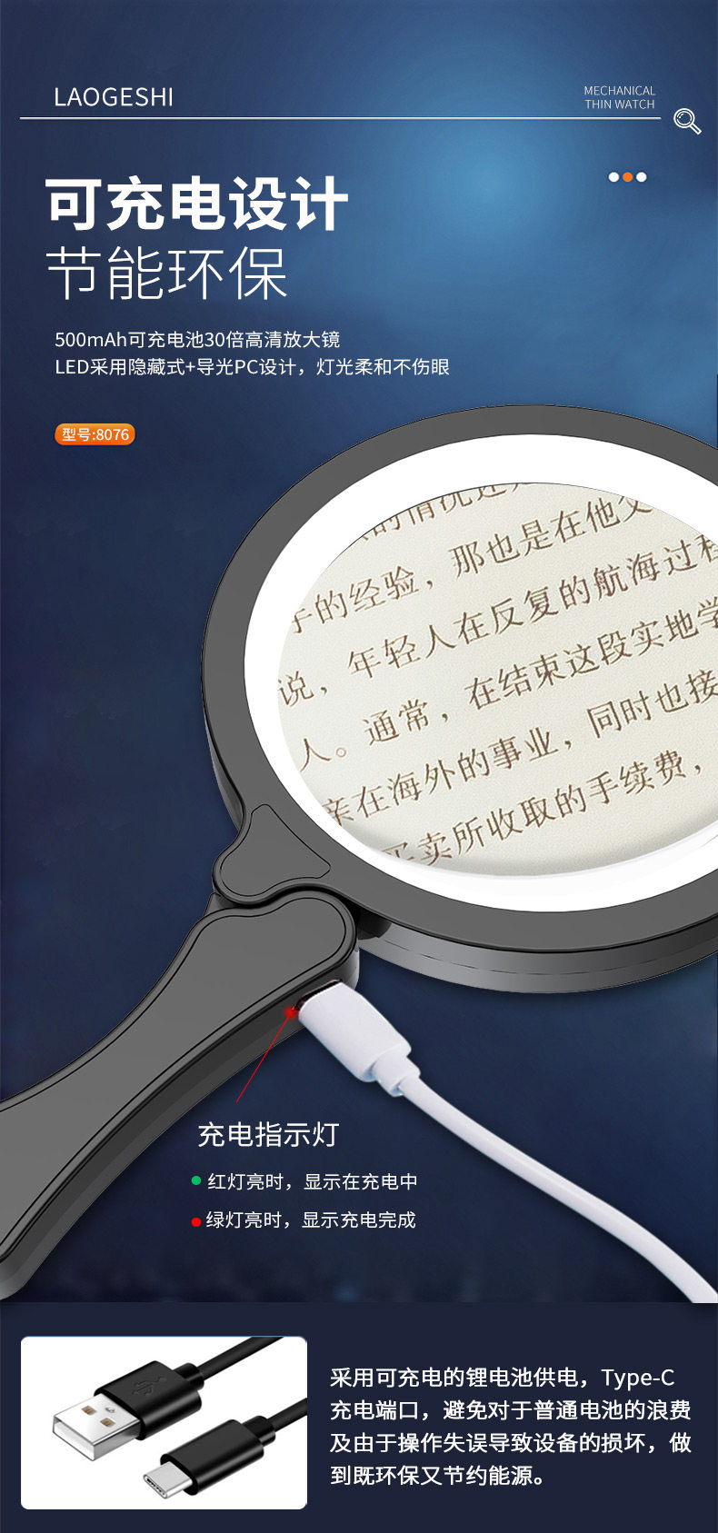 Портативное чтение на солнечной энергии с зарядкой для пожилых людей, мобильный телефон, складная портативная дорожная лупа для школьников и студентов, увеличение в 20 раз