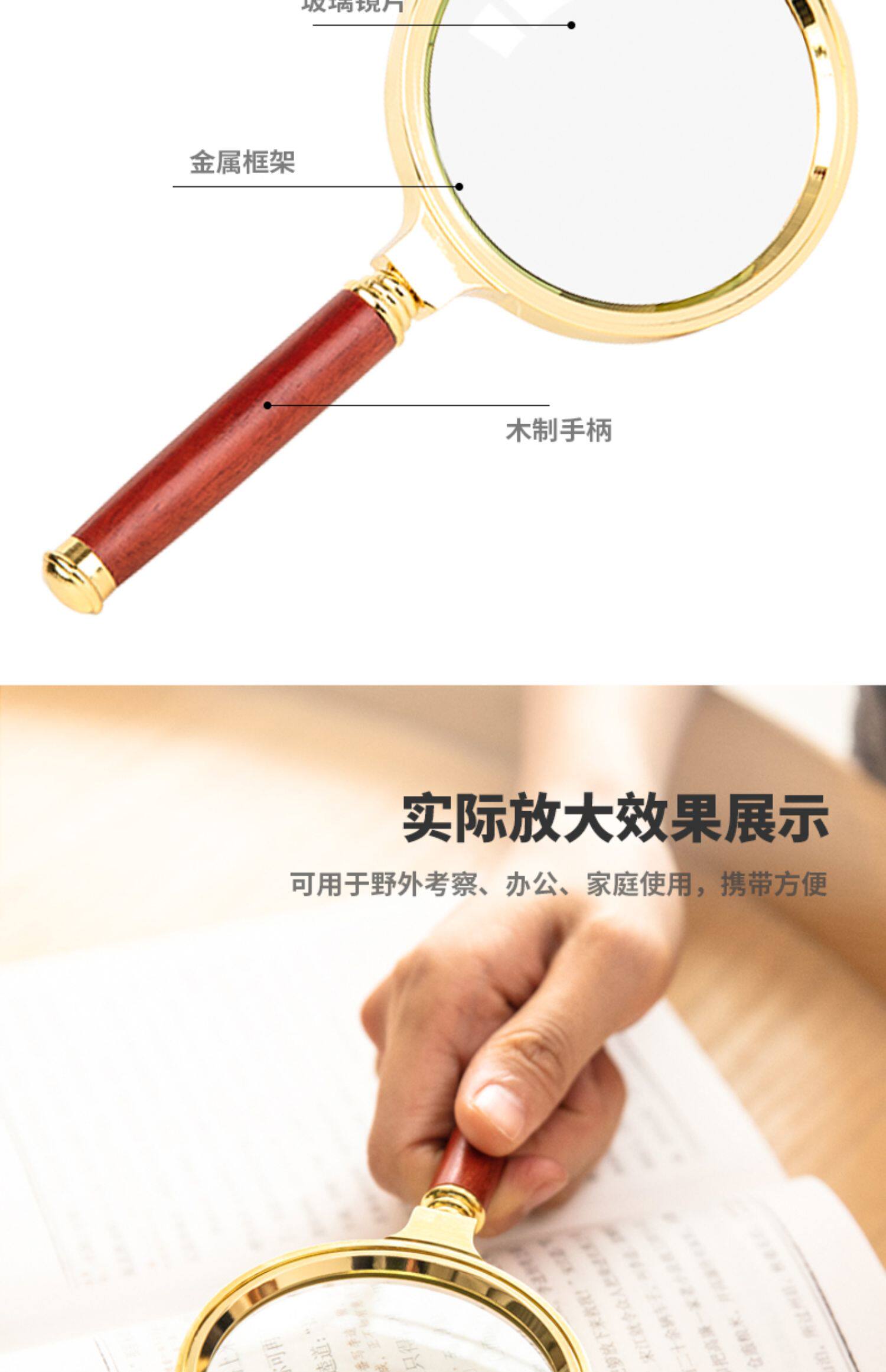 Мощное увеличительное стекло, увеличительное стекло высокой четкости для чтения пожилых людей, пресбиопия высокой четкости, чтение книг и газет, металлический каркас, портативная мощная профессиональная оценка обслуживания, специальные дети и студенты высокой четкости