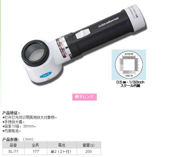 Японский инженер-инженер бренд с лампами с лампами 10 раз, 30㎜ SL-71 освещение, положительное зеркало.