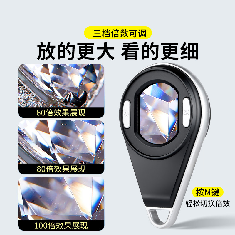 Микроскоп, цифровая бриллиантовая лупа, портативный экран, ювелирное украшение из нефрита, антикварные часы с подсветкой из грецкого ореха, увеличение в 60 раз, с драгоценным камнем