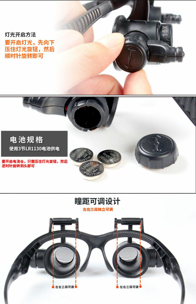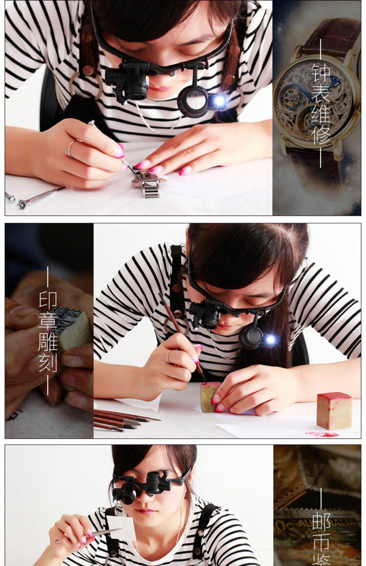 Очки, лупа с подсветкой, электронное ювелирное украшение, часы, увеличение в 20 раз