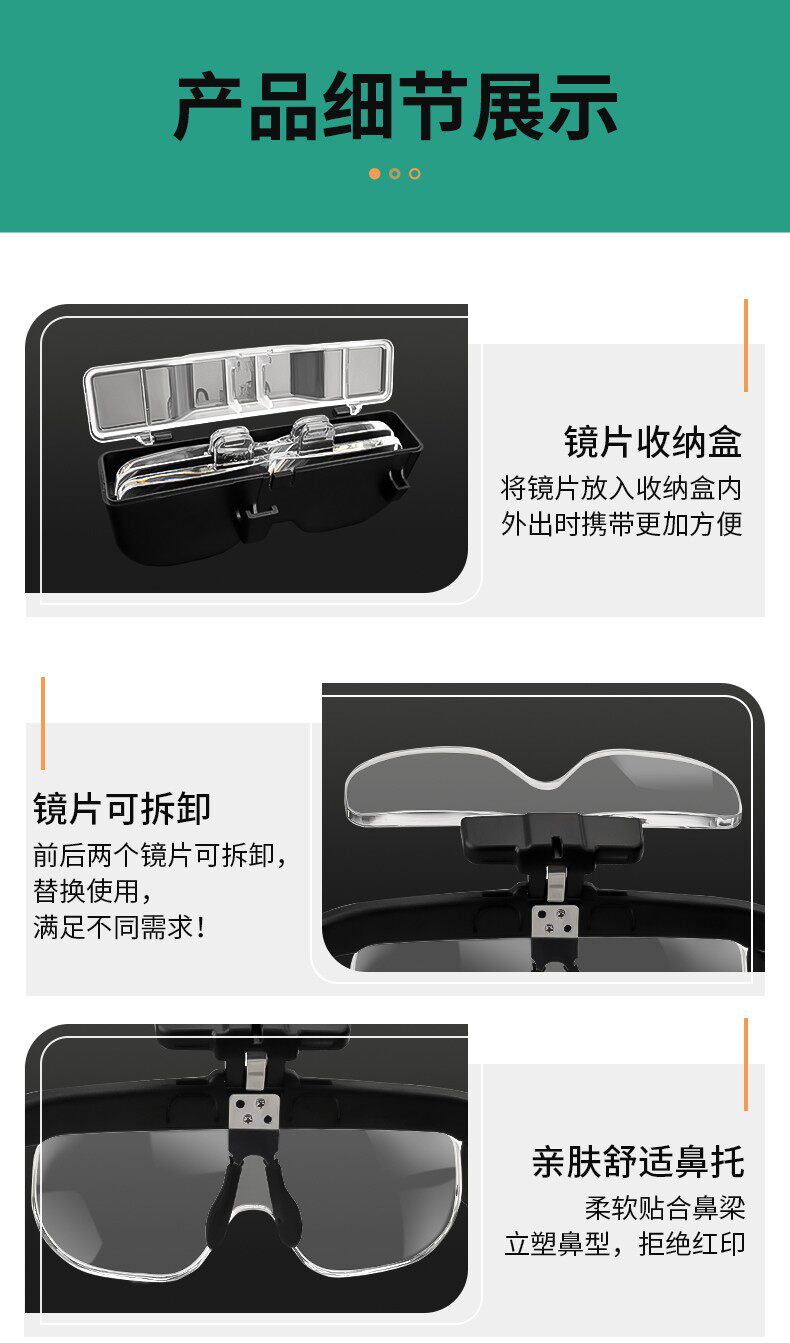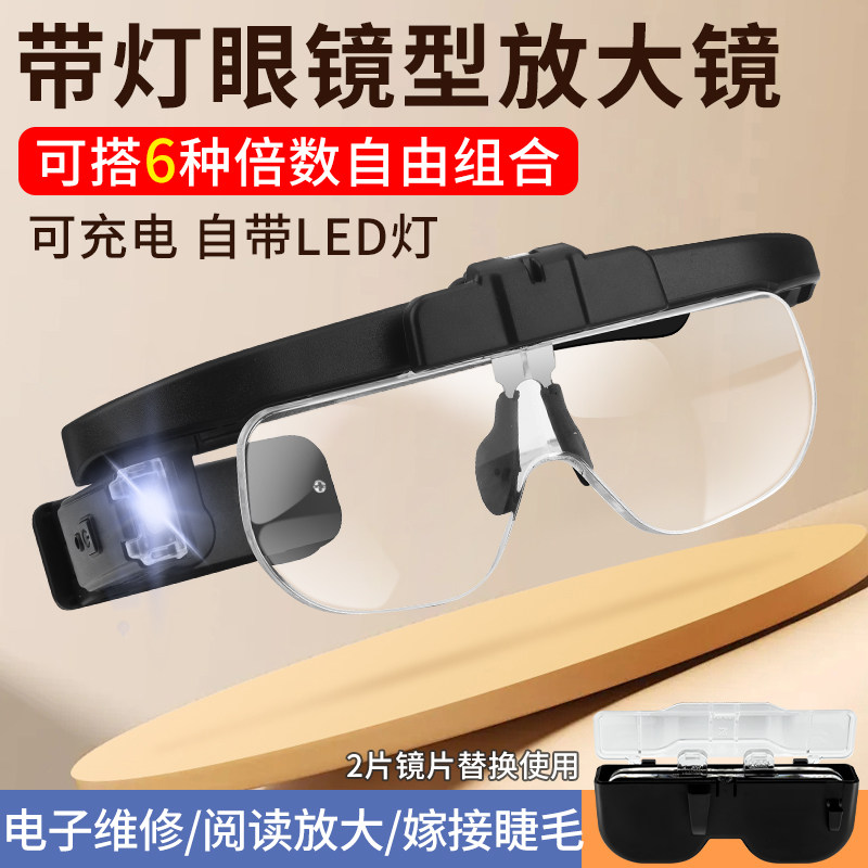 Очки, лупа для пожилых людей, чтение, перезаряжаемый резной объектив с подсветкой с зарядкой, увеличение в 5 раз, с вышивкой
