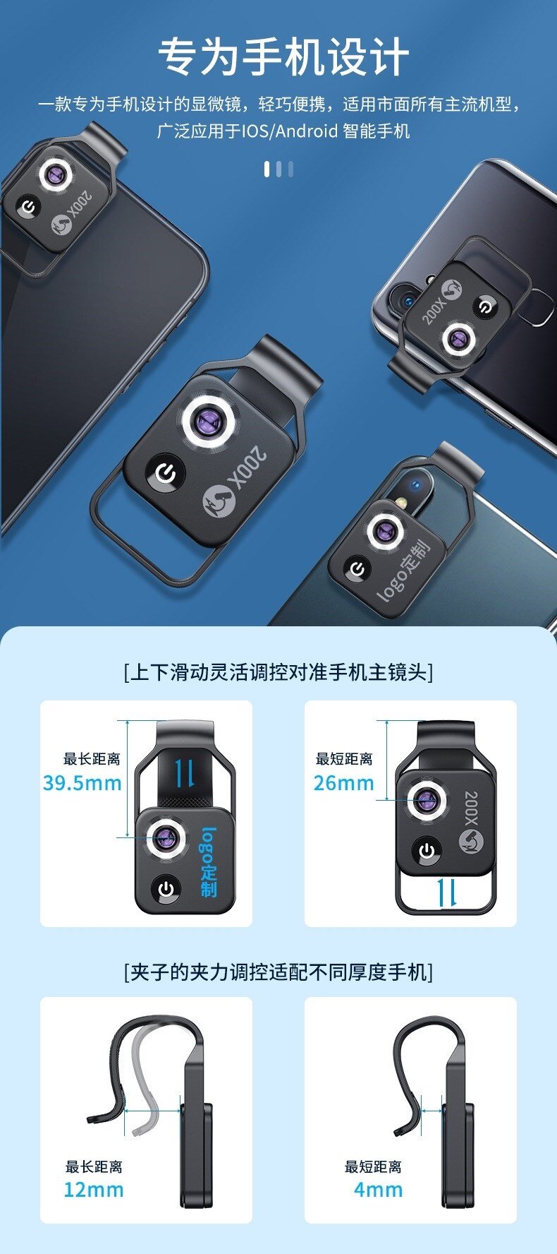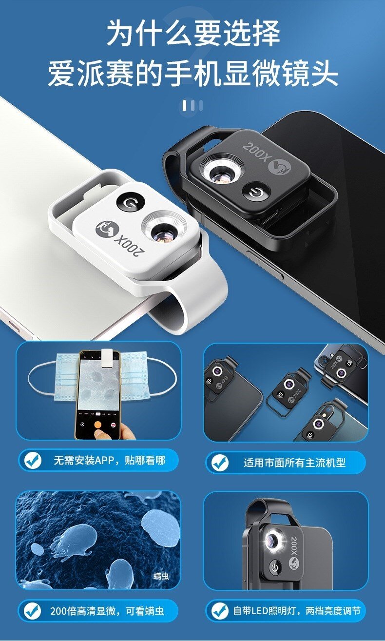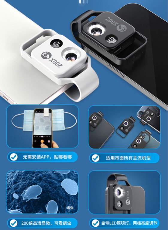 Мобильный телефон, лупа, маленький портативный микроскоп, ювелирное украшение, увеличение в 100 раз, увеличение в 200 раз