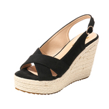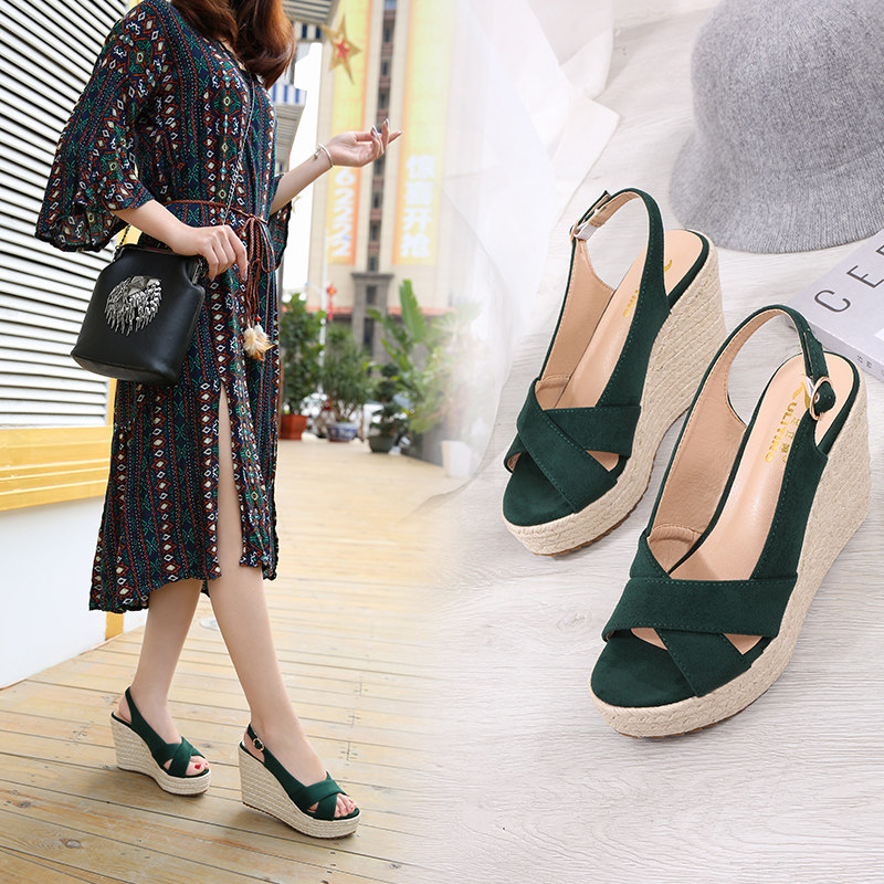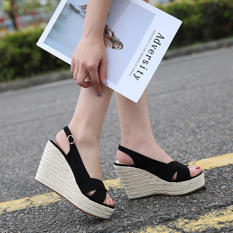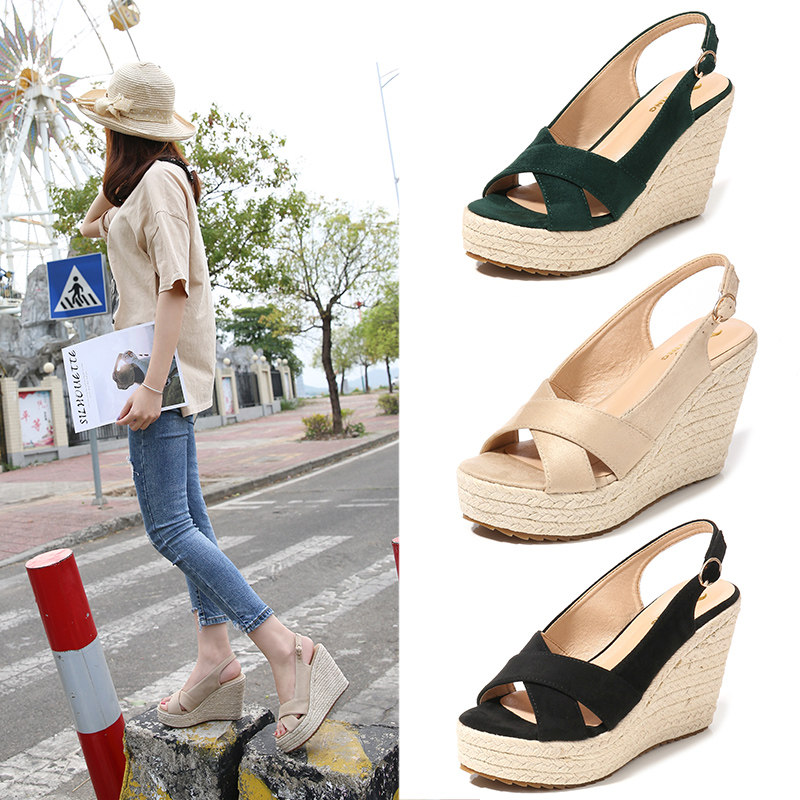 Женская обувь, новые босоножки на танкетке, корейская версия, универсальные высокие каблуки, соломенная толстая подошва, модные женские туфли интернет-знаменитостей, маленький размер 30 31 32