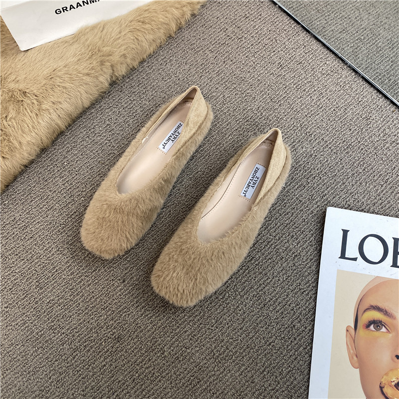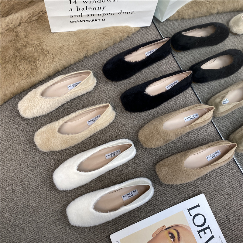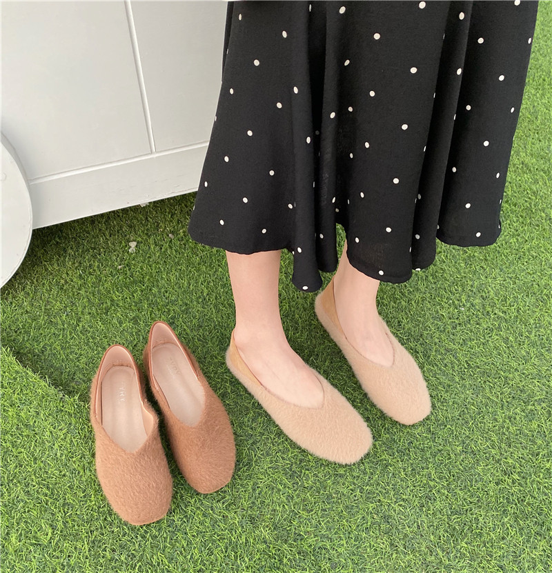 Нежный сказочный стиль!~ Осень Новая Мосо Доуду Женская сингла обувь из муки плюш пинг -бабушка Dian Две ленивые туфли