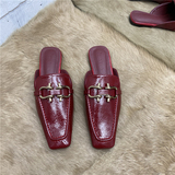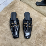 Ашиго та же металлическая металлическая пряжка дно Бао Ту затягивает шикарные корейские квадратные квадратные квадраты -патентная кожаная женская песчаная тапочки ленивые туфли Мюллер