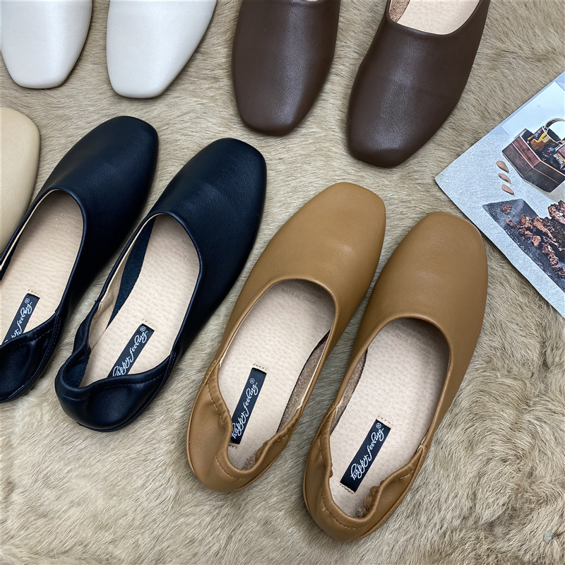 Туфли «бабушка» на плоской подошве, мягкая кожа в стиле феи, мягкая подошва с квадратным носком, ранние весенние туфли-лодочки, женская обувь для мам, туфли для ленивых яичных рулетов
