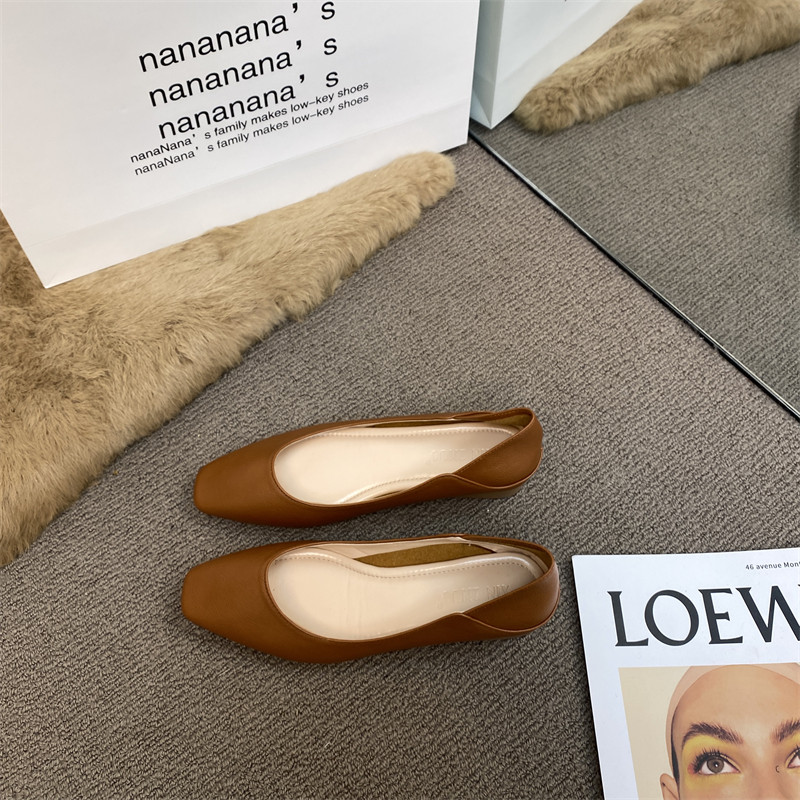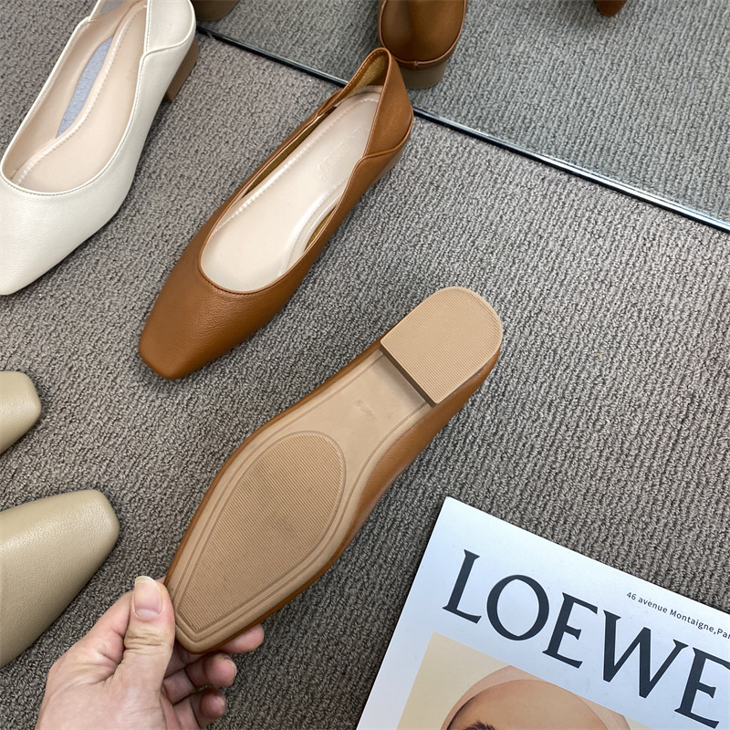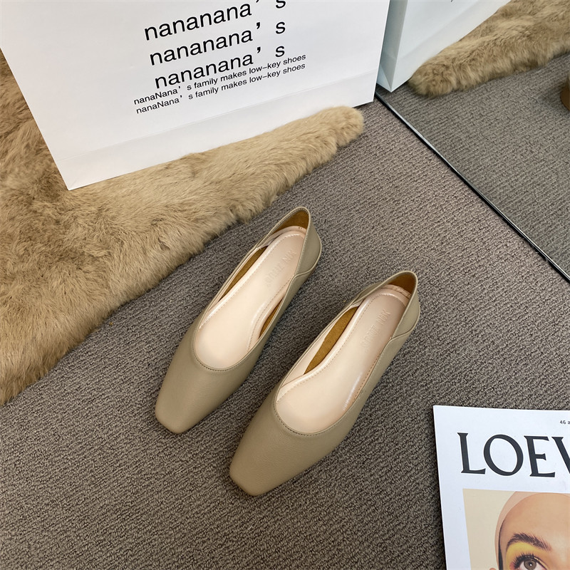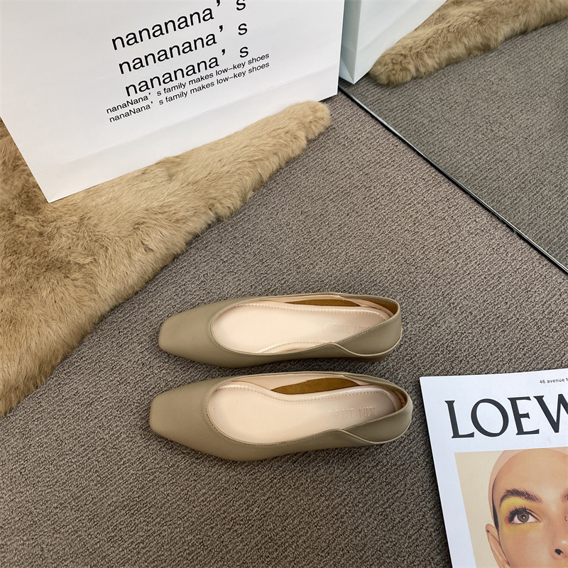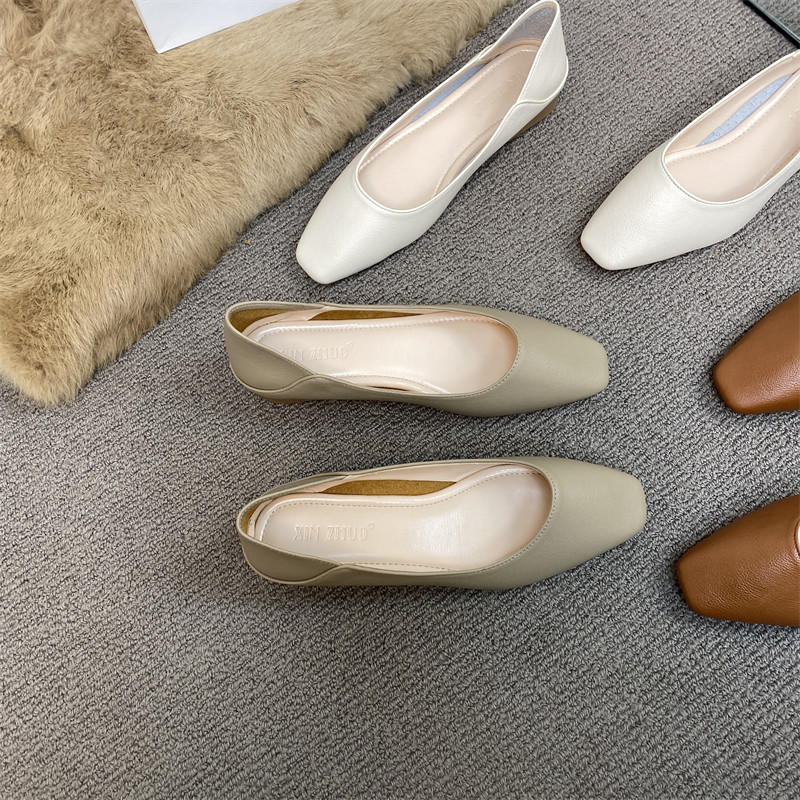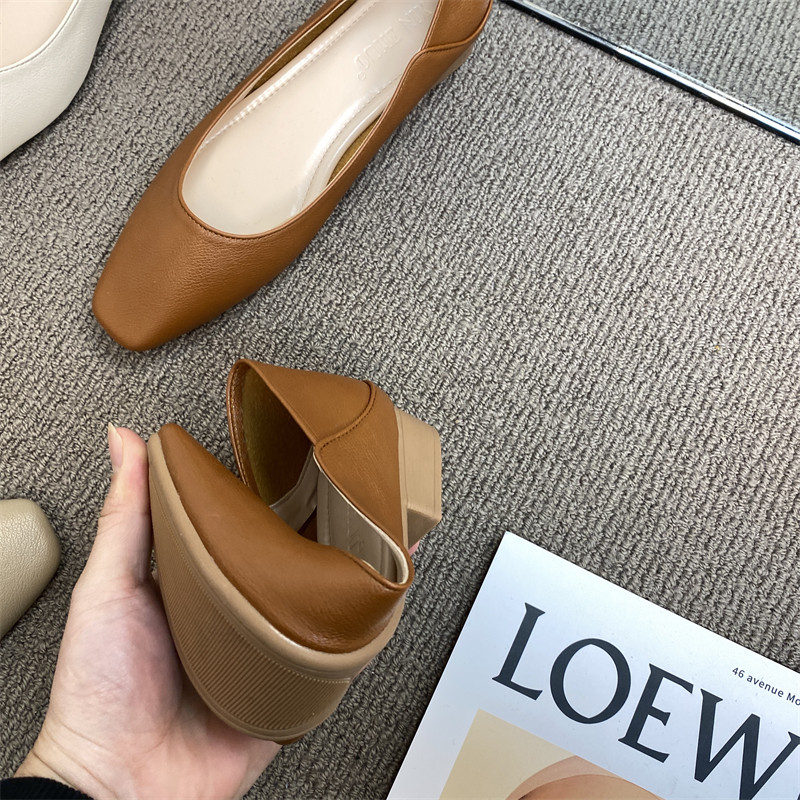 Подлинная кожаная бабушка обувь для женщин густые каблуки 2025 весна французская одиночная обувь низкие каблуки неглубокие рот ночная обувь
