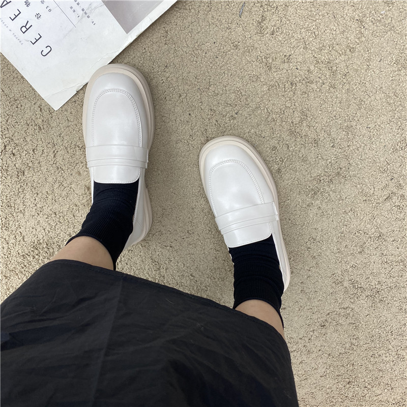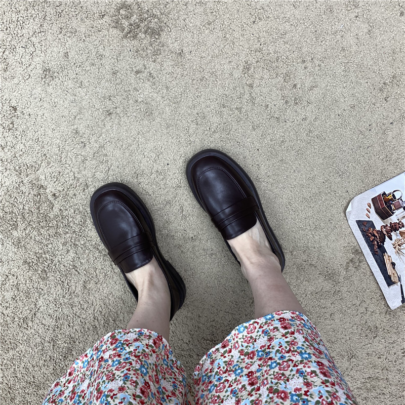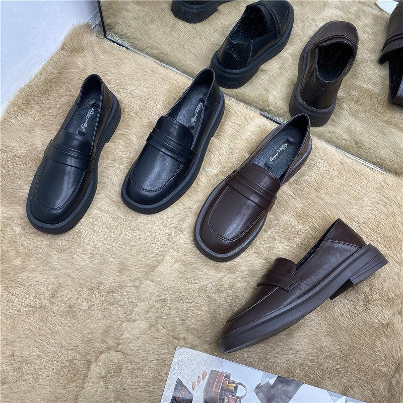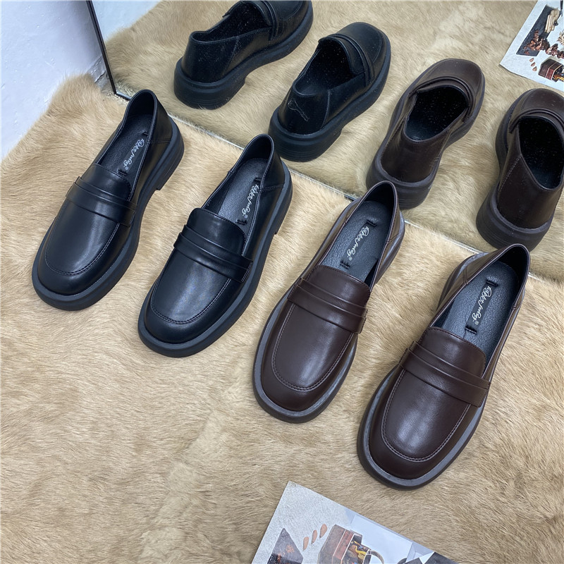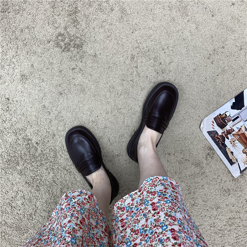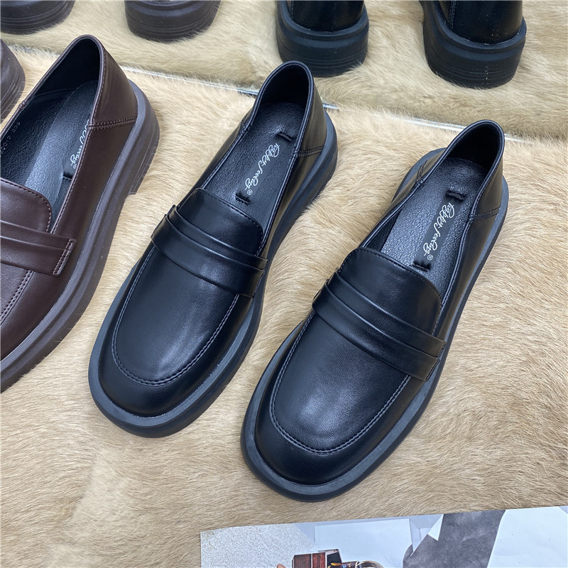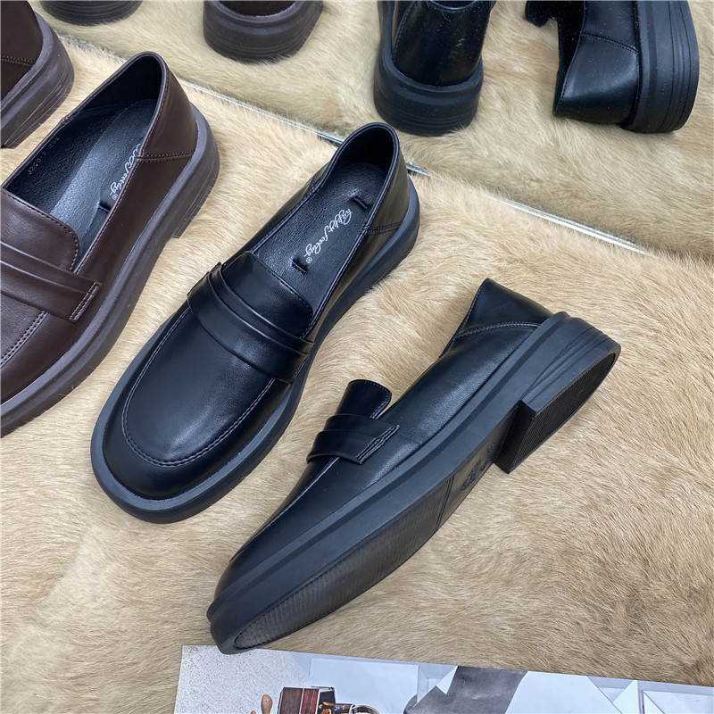 Черная весенняя обувь на платформе для кожаной обуви, лоферы в английском стиле, французский стиль, в британском стиле