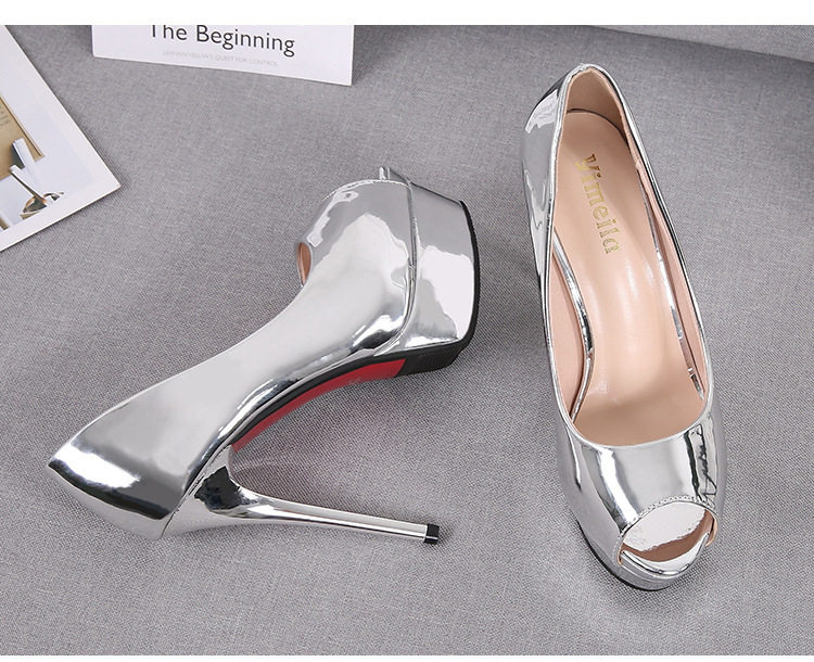 Сексуальные серебристые туфли на шпильке Hentiangao, женская обувь для ночного клуба «рыбий рот», туфли на очень высоком каблуке 15 см, непромокаемые туфли на платформе, туфли на высоком каблуке 16 см