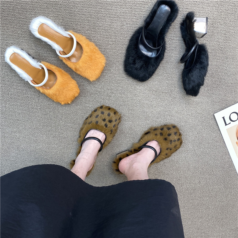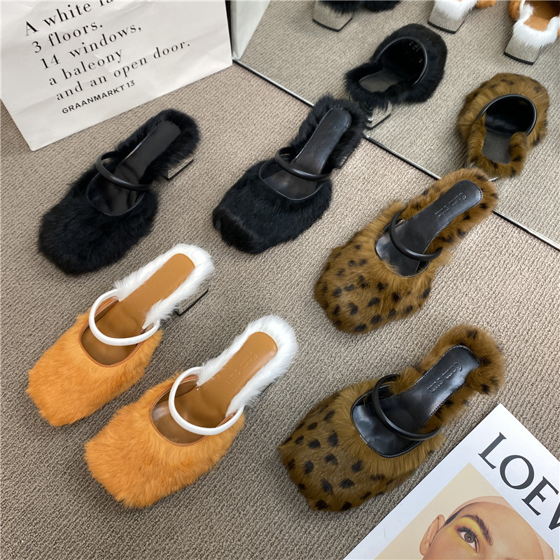 2025 Весна и лето Новое кроличье меховое пакет с купанием для женщин для женщин, одетых в туфли с толстым пяткой на каблуке.