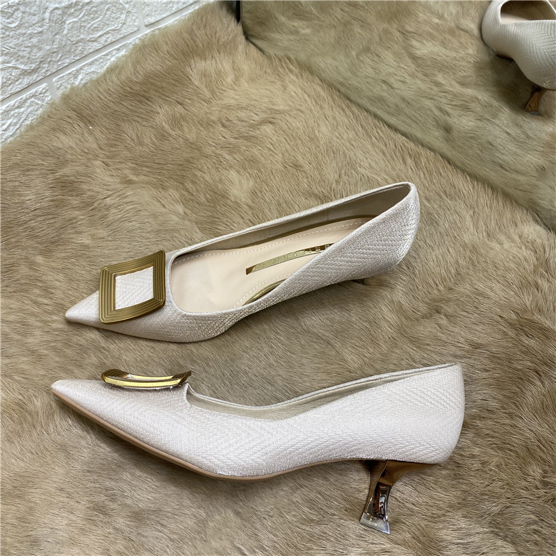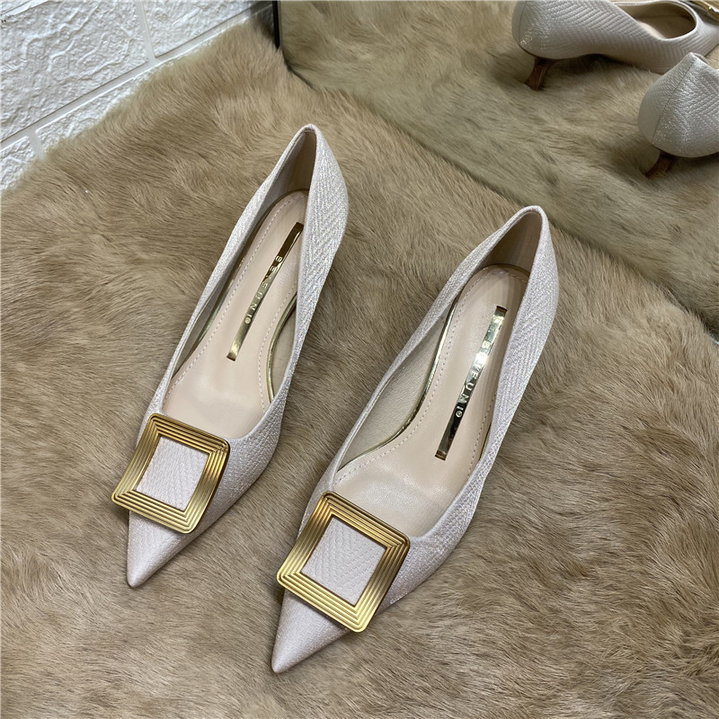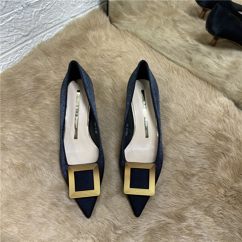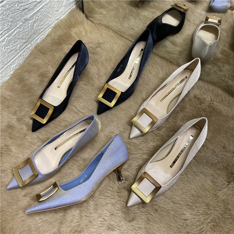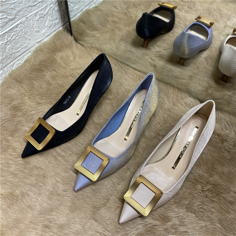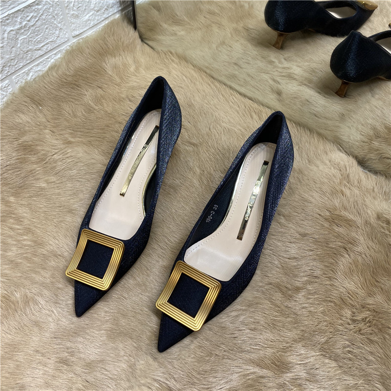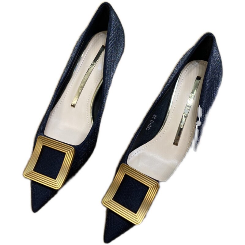 Синяя металлическая обувь с заостренным носом на высоком каблуке, в стиле Шанель, для подружки невесты, французский стиль