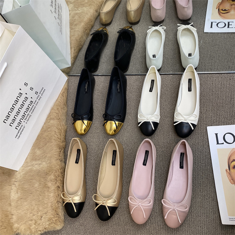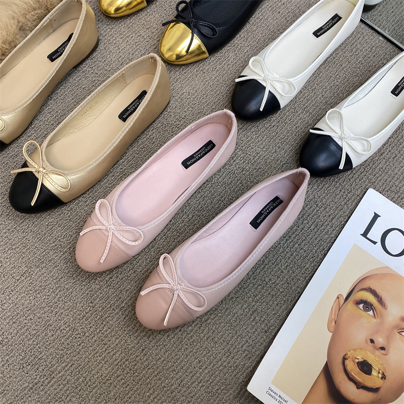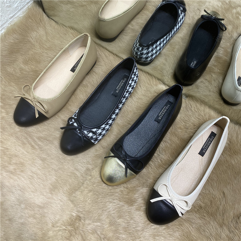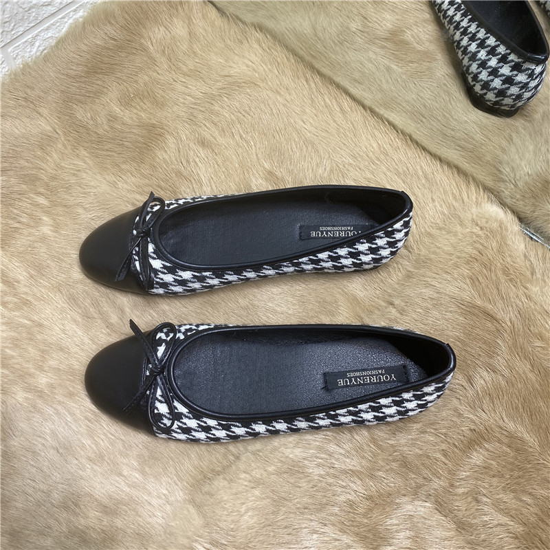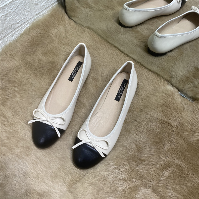 Весенняя универсальная плоская подошва обувь с бантиком, в корейском стиле, в стиле Шанель