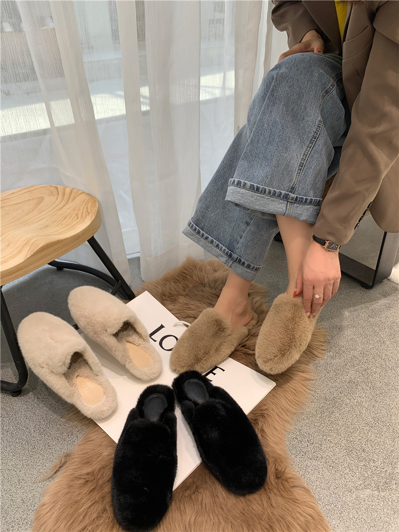 2024 Осень и зимний шерсти для шерсти шерсти плюс бархатная плоская дна голова, наполовину тащится женщинами в норковых туфлях.
