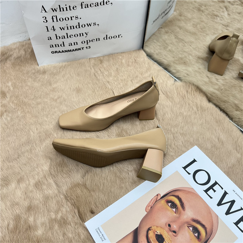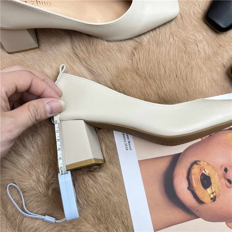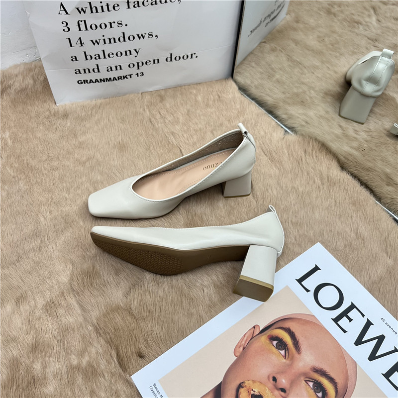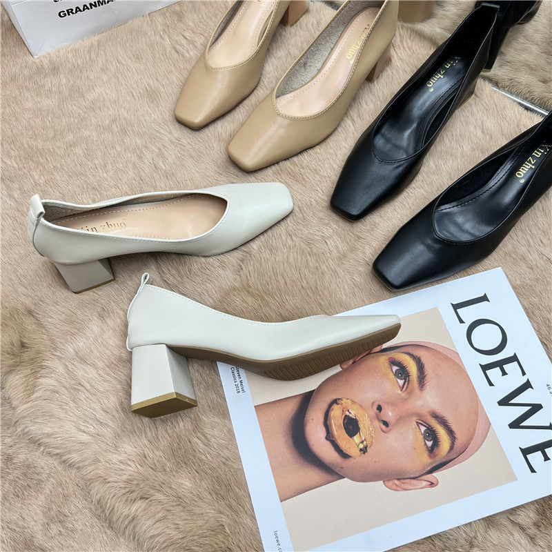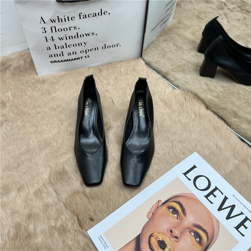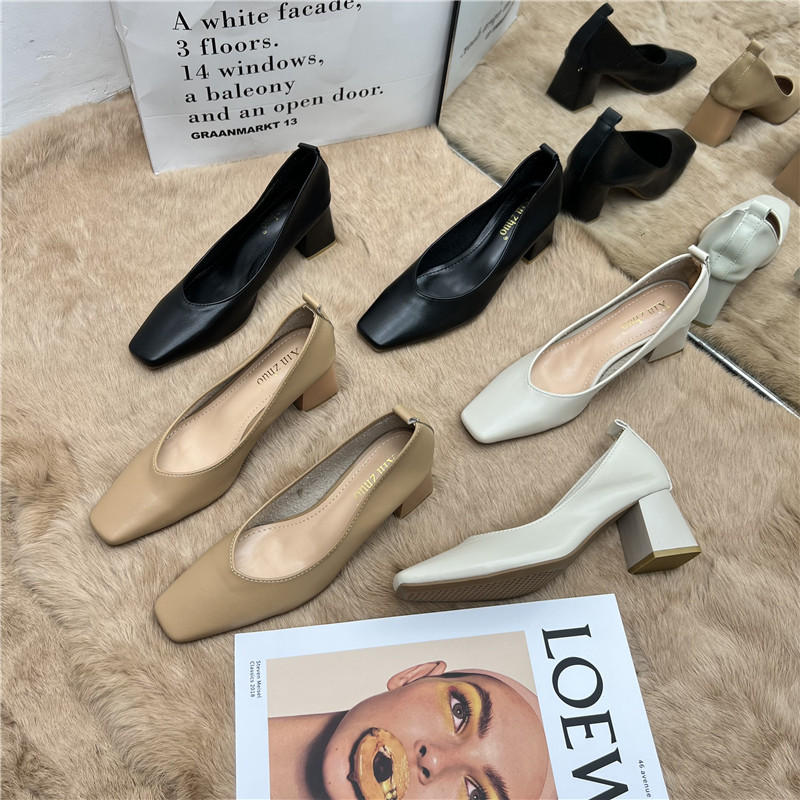Подлинная кожаная бабушка обувь для женщин Толстые каблуки 2025 Весна Новые квадратные носки высокие каблуки для вечернего бриза нежные рабочие ботинки