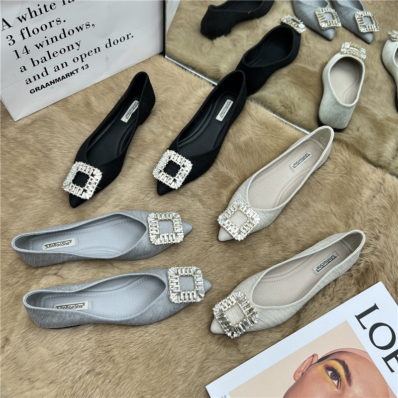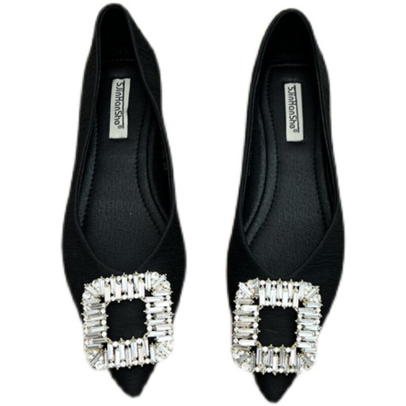 Французская ретро -квартира -Энда заостренная одиночная обувь женщина 2024 Весна Новые Кубики Слайки Прета неглубокая бобовая обувь для рабочих туфель