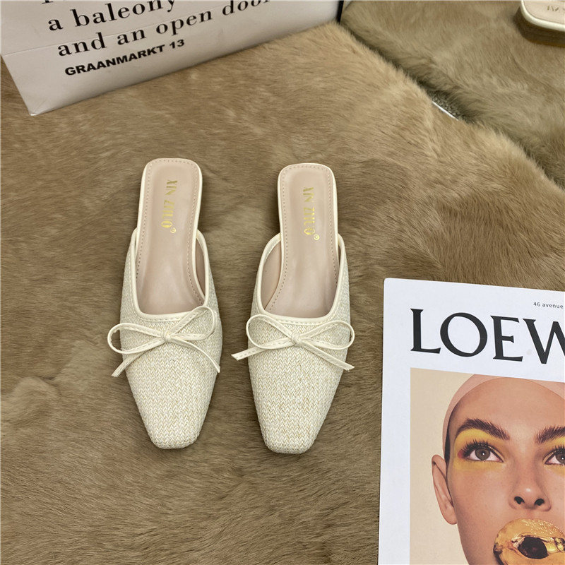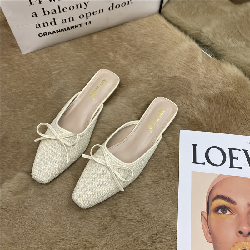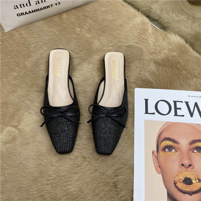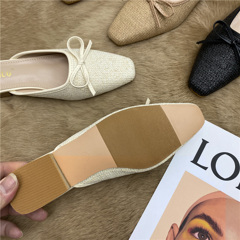 Квадратный головолочный, толстого на каблуках туфли с бабочкой с бабочкой 2025 Летний новый стиль для женщин, одетых в низкие каблуки