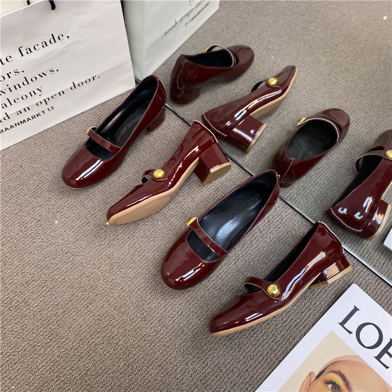 2025 Весна, черные туфли Мэри Джейн с круглым носком и неглубоким ртом на низком каблуке, маленькие кожаные туфли из лакированной кожи, винтажные женские туфли на одинарной обуви на толстом каблуке, женские туфли на высоком каблуке