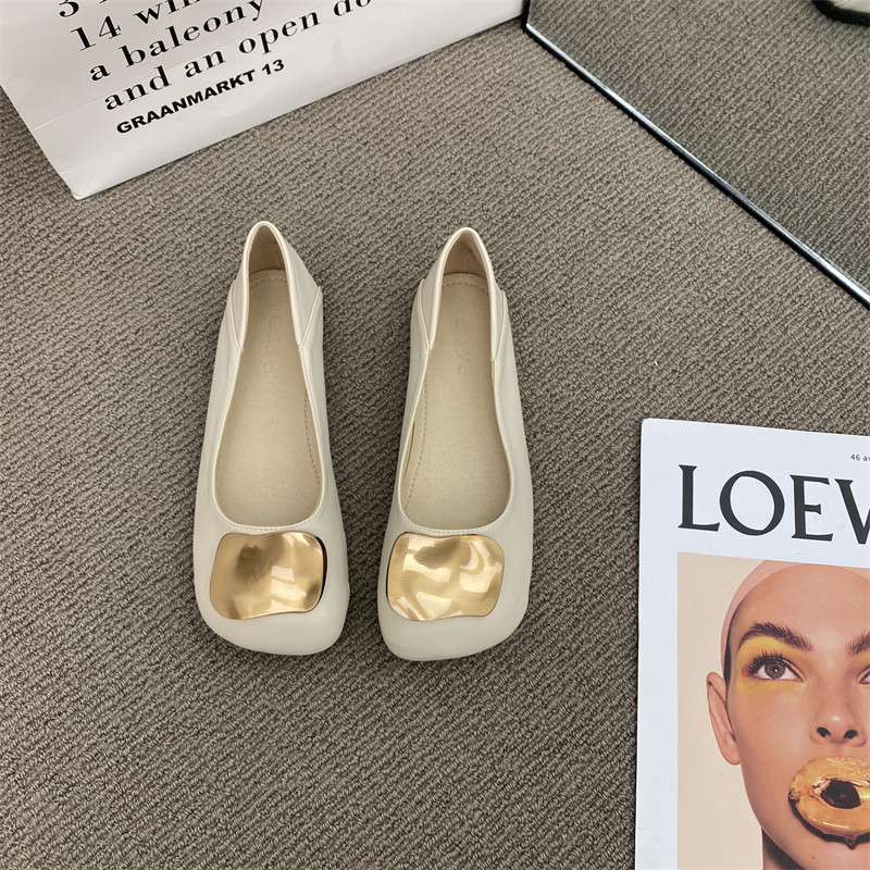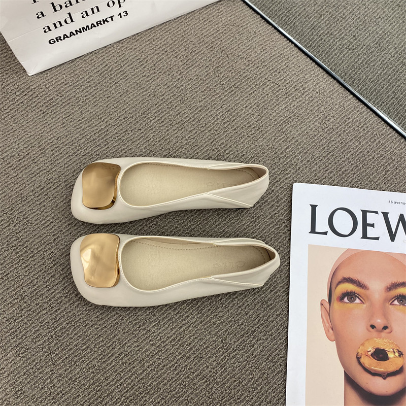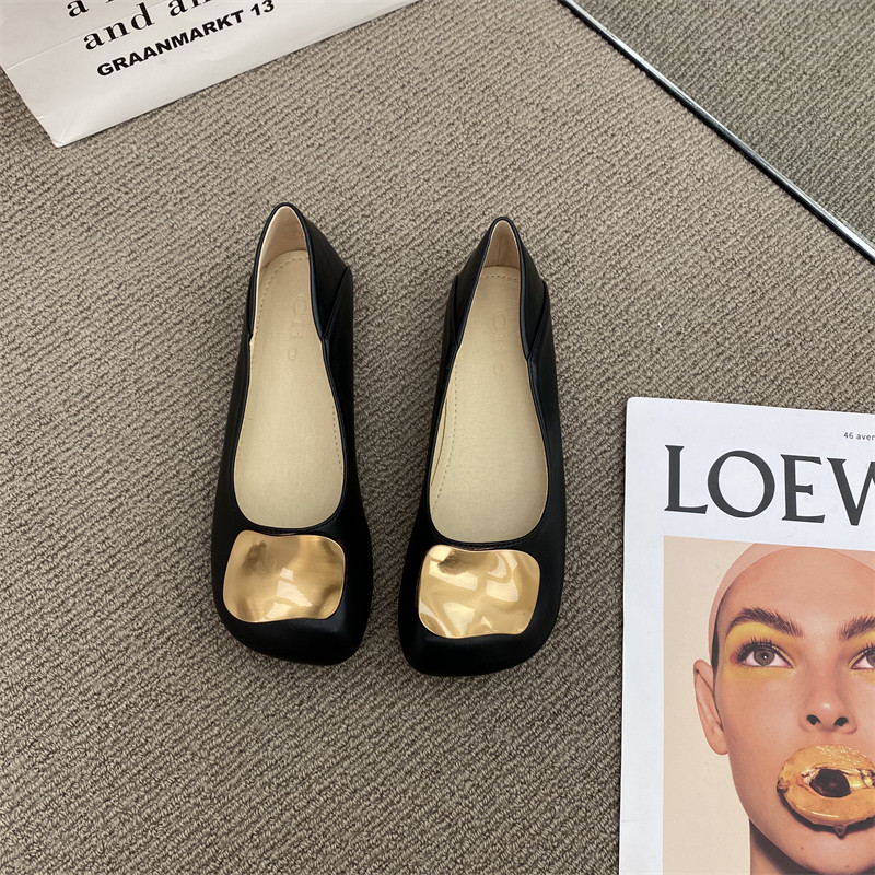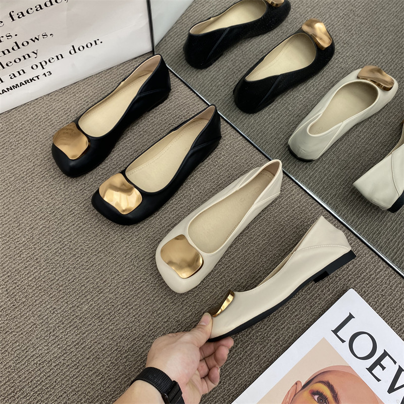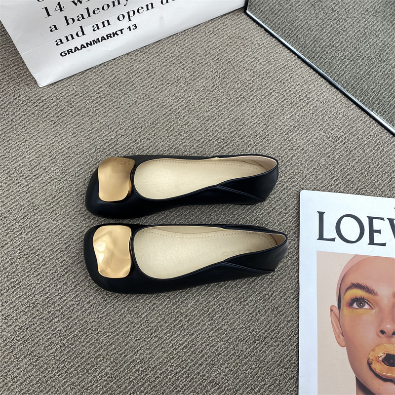 Металлическая пряжка плоская обувь для женщин 2025 Осень Новые вечерние туфли Ленивые бабушки