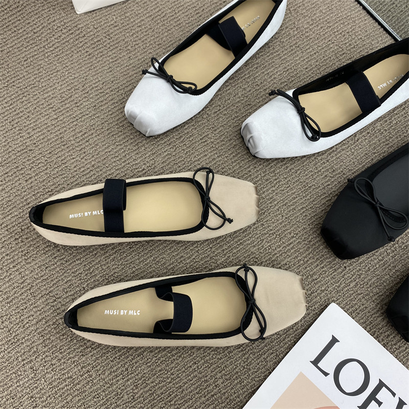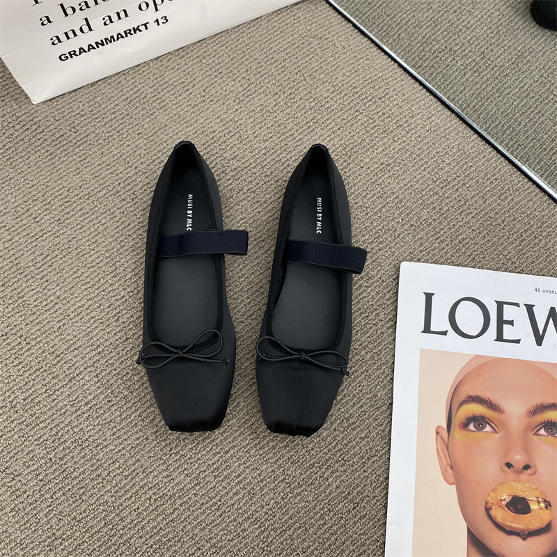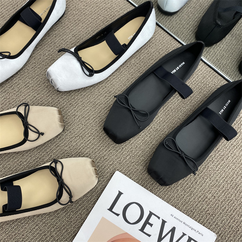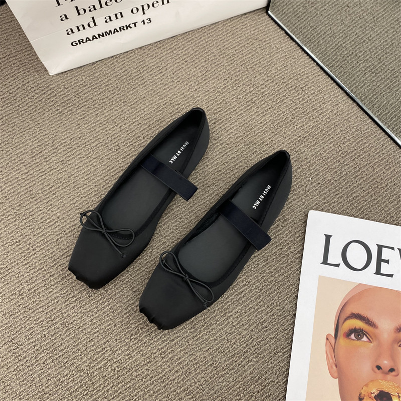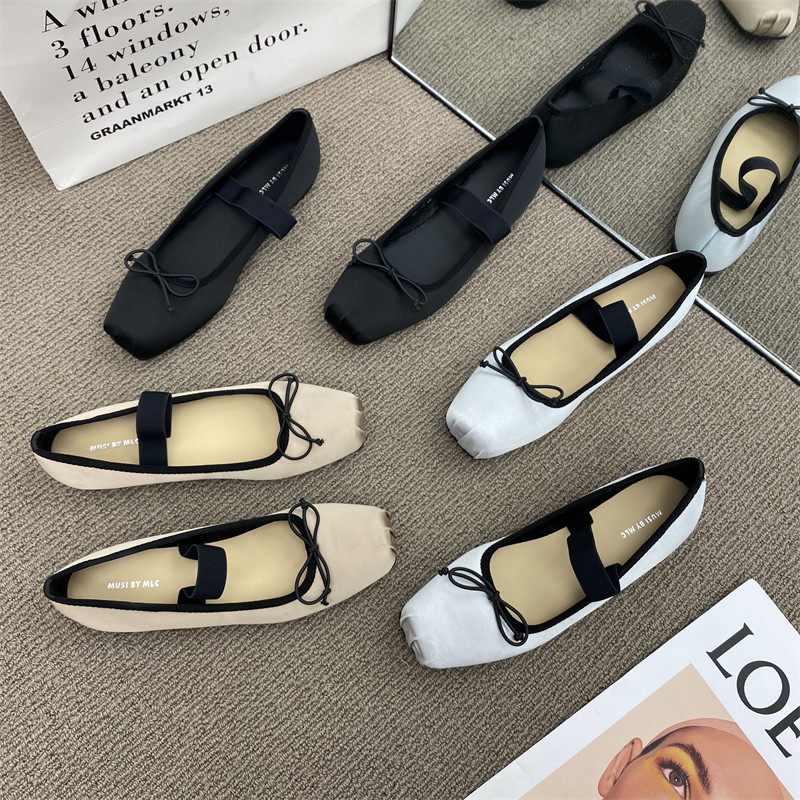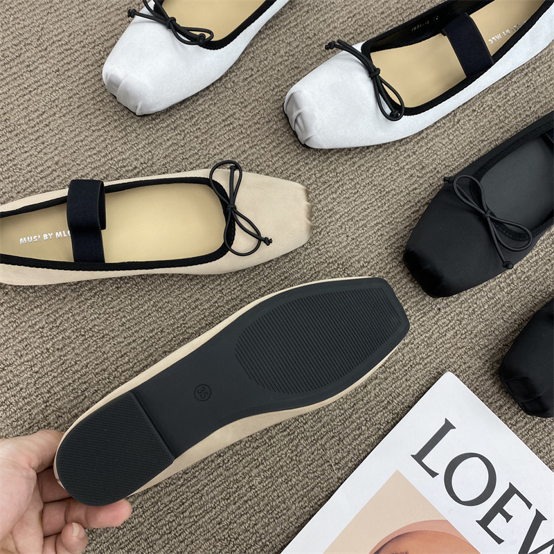 Балетки с бантиком, шелковая плоская подошва обувь
