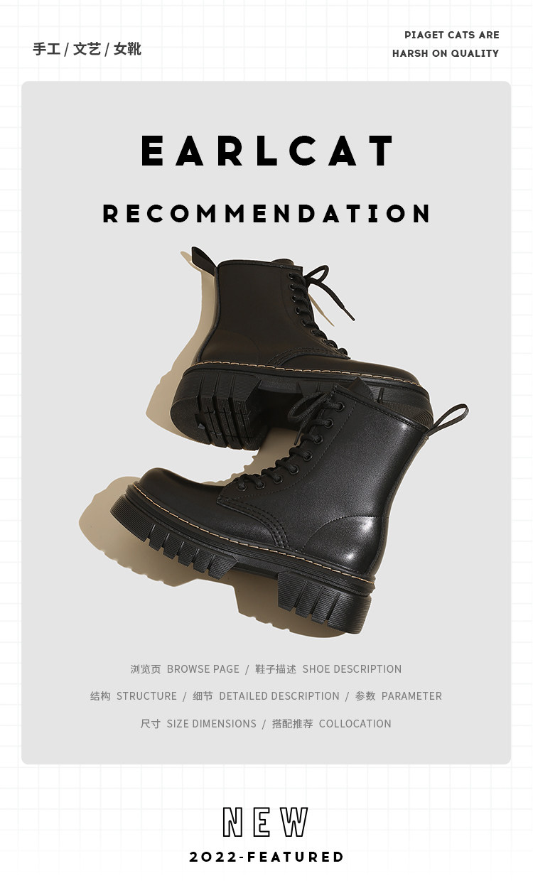 伯爵猫 Martens, демисезонные универсальные высокие короткие сапоги в английском стиле, ботинки, в британском стиле, из натуральной кожи