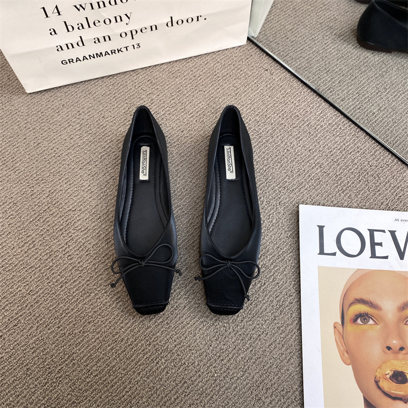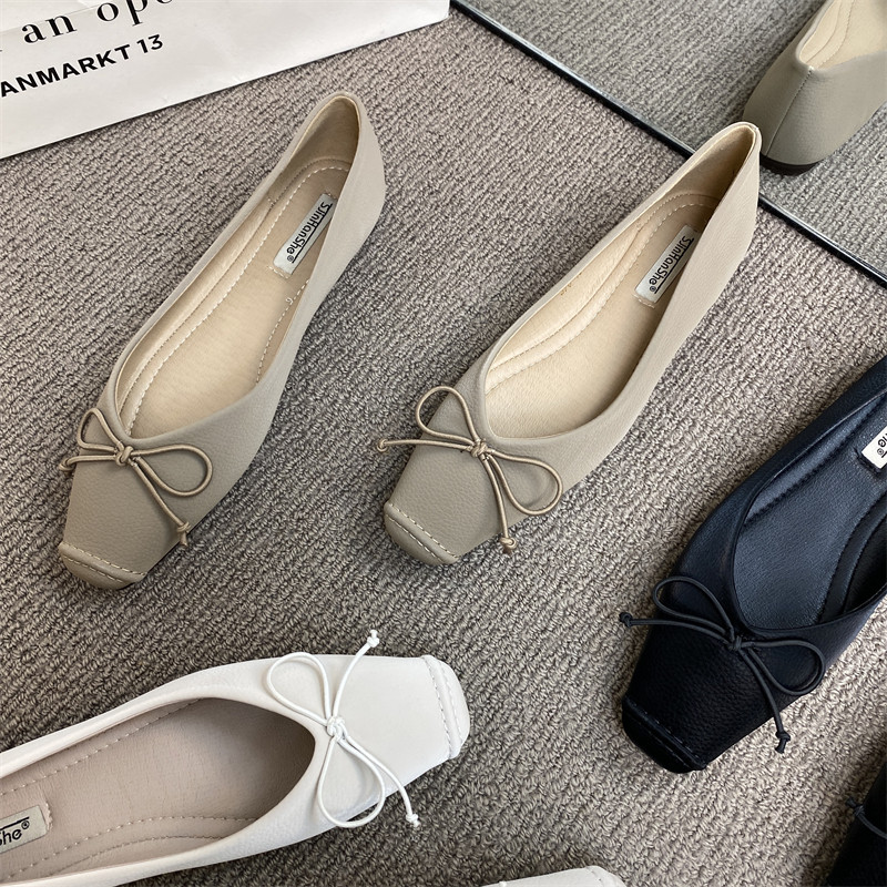 Весенняя универсальная комфортная мягкая обувь с бантиком, французский стиль, мягкая подошва