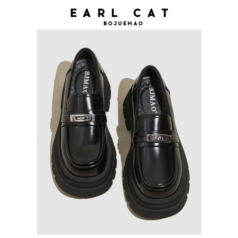 伯爵猫 Универсальная обувь в английском стиле для кожаной обуви, весенние высокие лоферы на платформе, в британском стиле, тренд сезона
