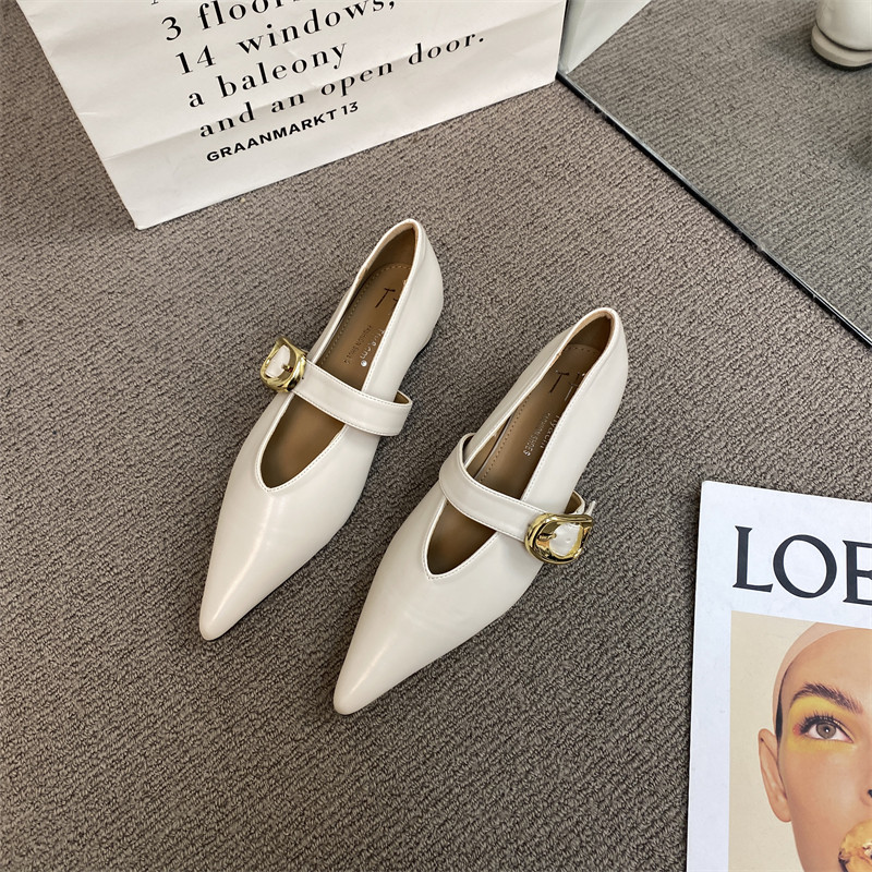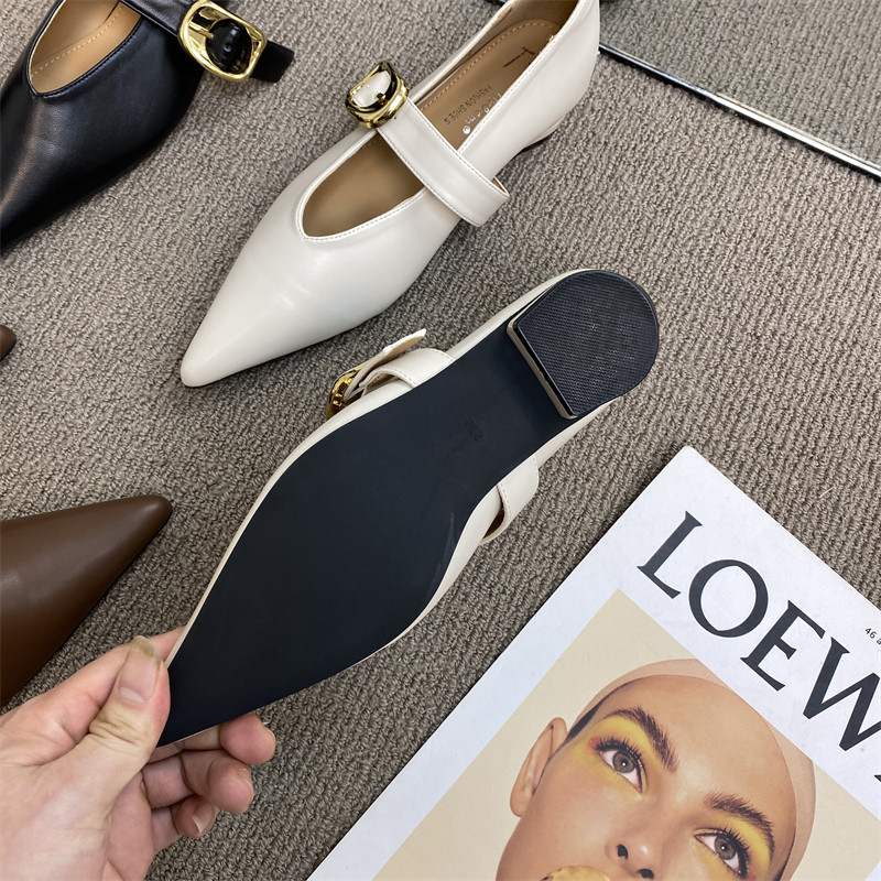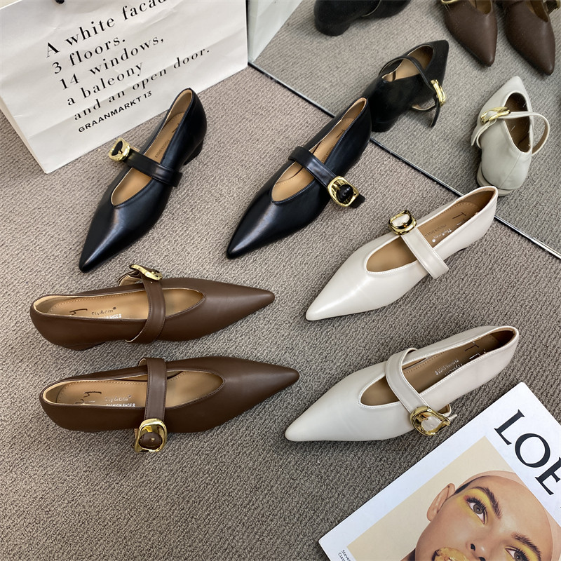 Лето 2025, новый стиль, туфли Мэри Джейн с острым носком и толстым каблуком, мягкая кожа, мягкая подошва, утягивающие туфли Мэри Джейн, туфли на низком каблуке с пряжкой одним словом