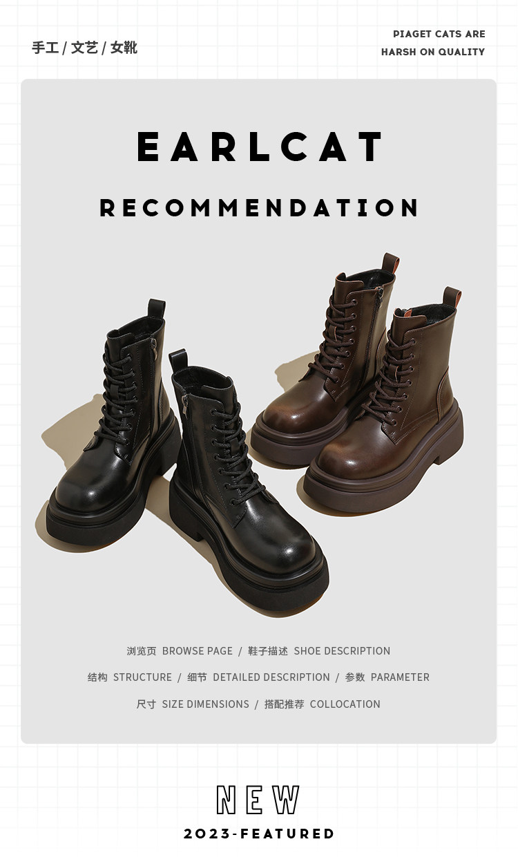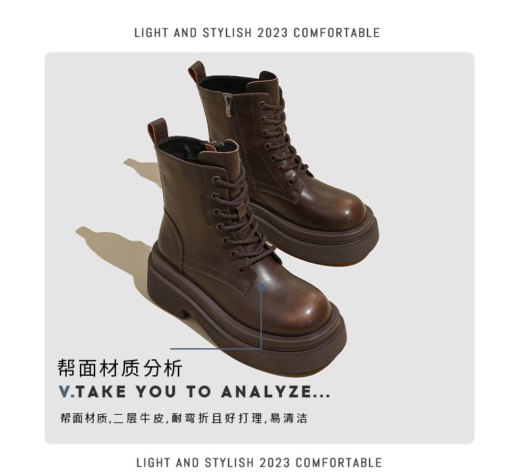 伯爵猫 Martens, утепленные универсальные демисезонные короткие сапоги с молнией на платформе в английском стиле, из натуральной кожи, в британском стиле
