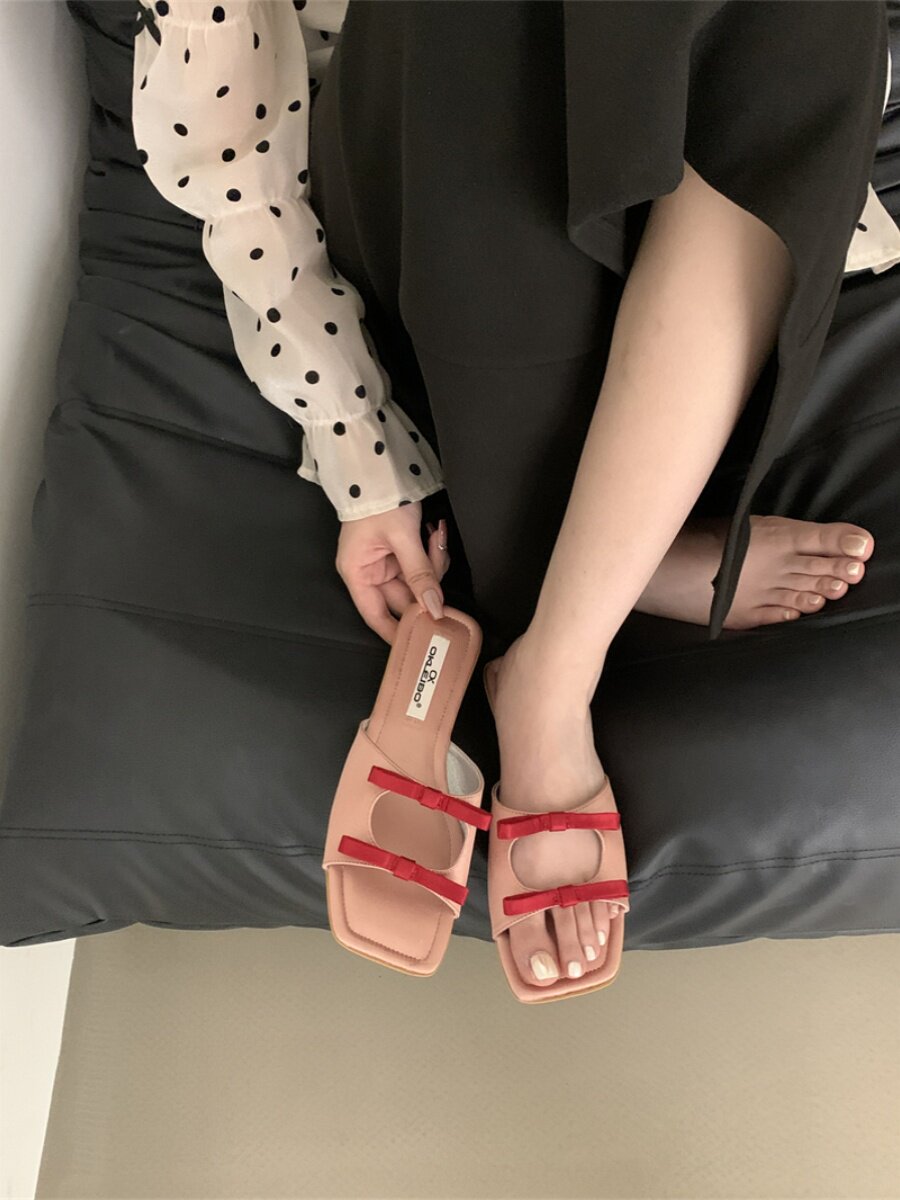 Мир красивый ~!Новые домашние животные ~!Розовые сказочные туфли в бабочке узел -пляжи песчаные тапочки