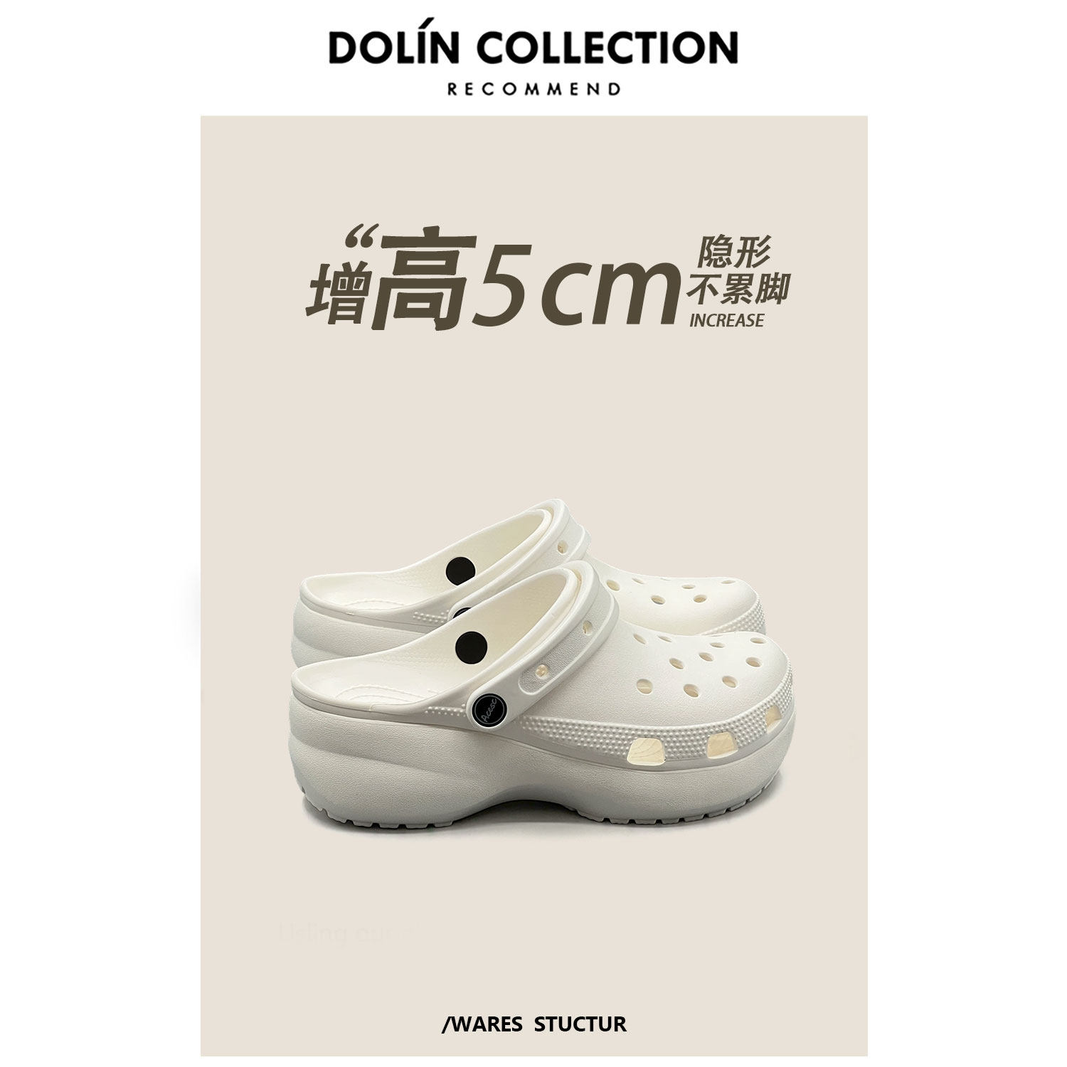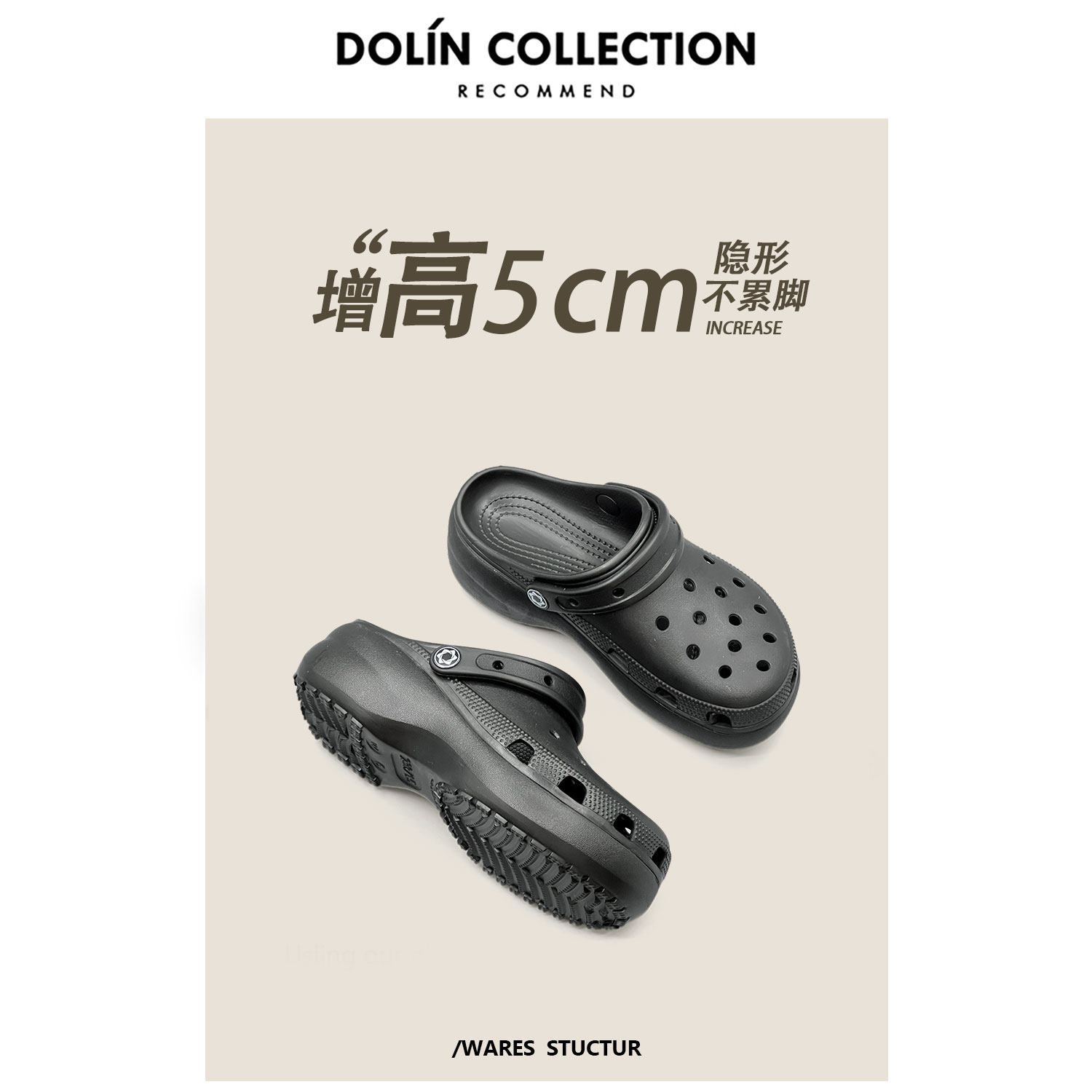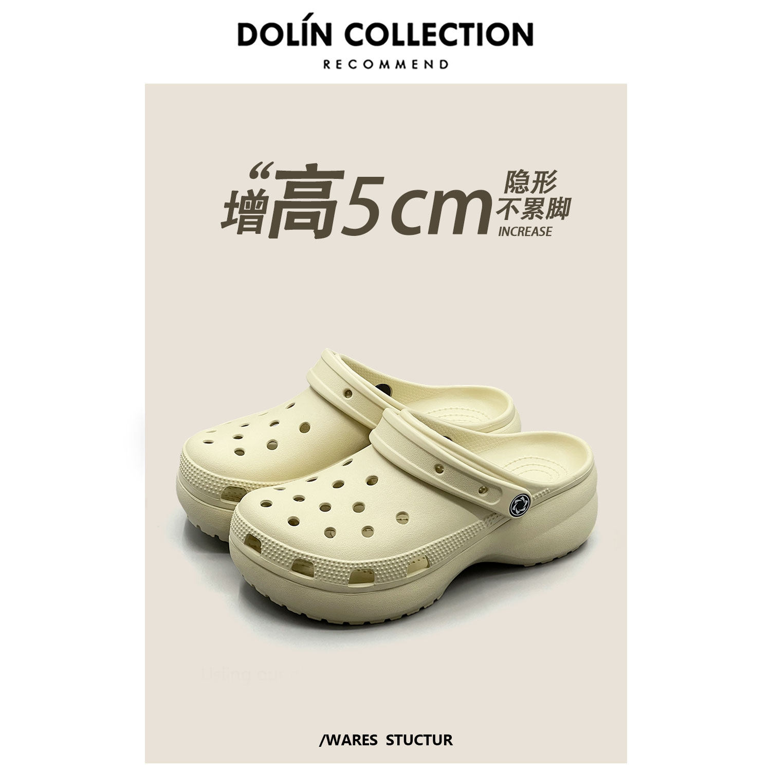 Dolincollection-M Yunduo Croc Shoes Женские сандалии и тапочки, увеличивающие рост на толстой подошве высотой 5 см, для верхней одежды, нескользящая пляжная обувь