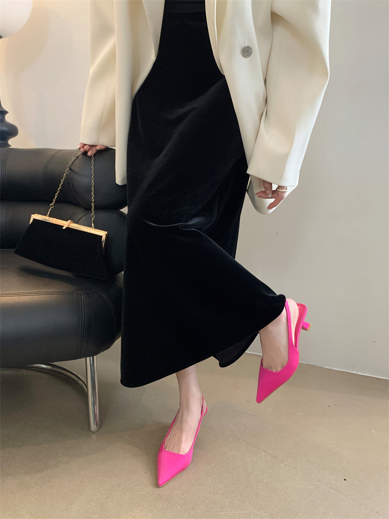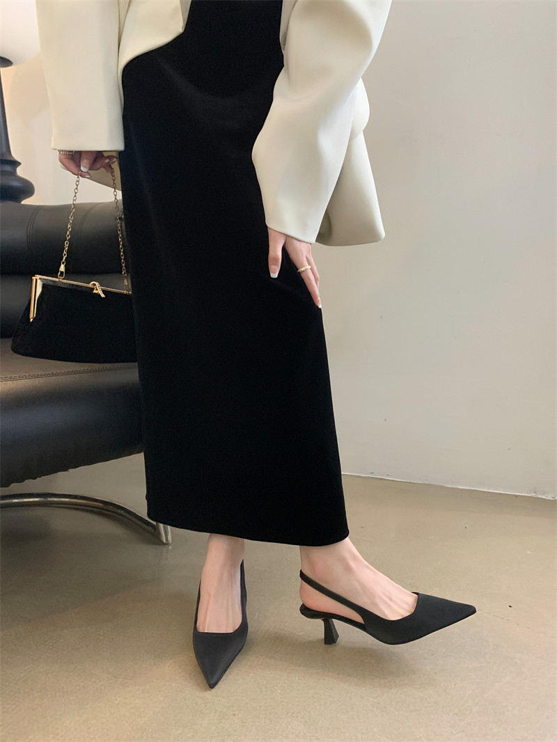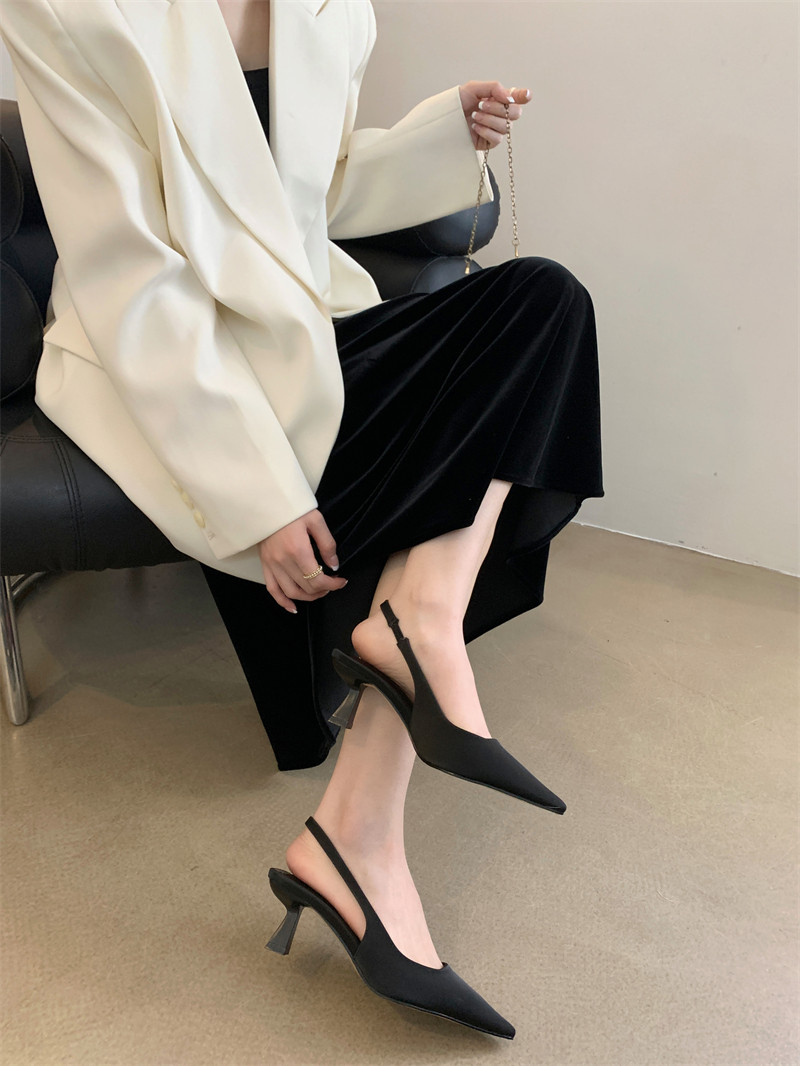 Черная Нана, сандалии, высокая обувь с заостренным носом на высоком каблуке, французский стиль, новая коллекция
