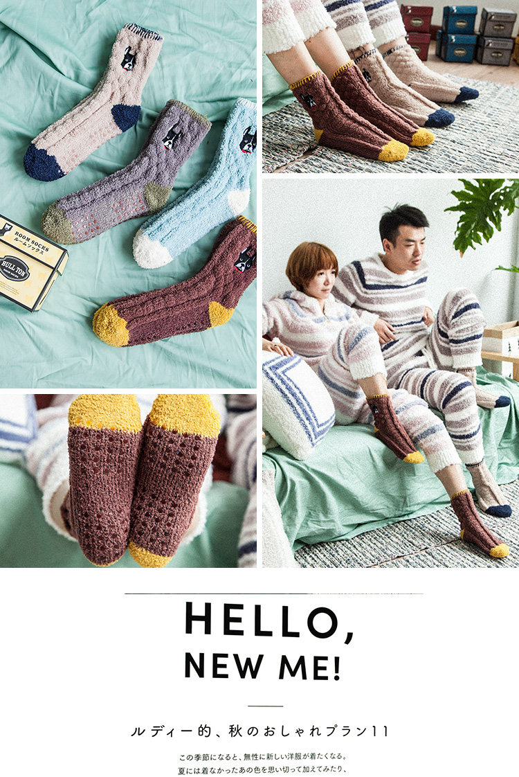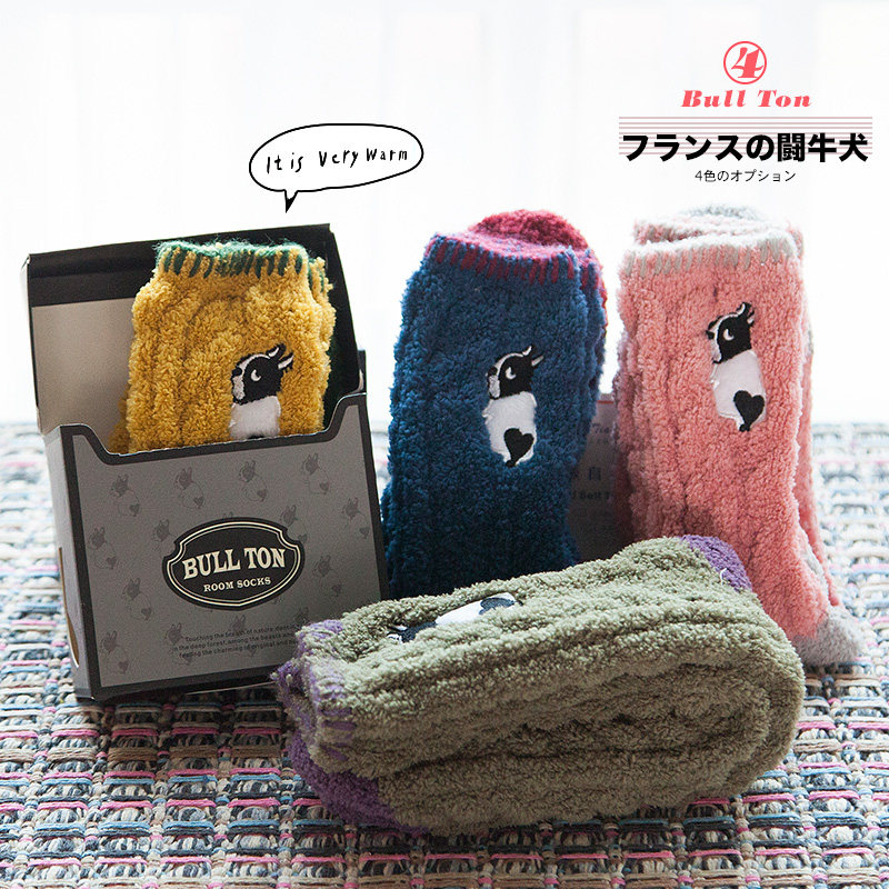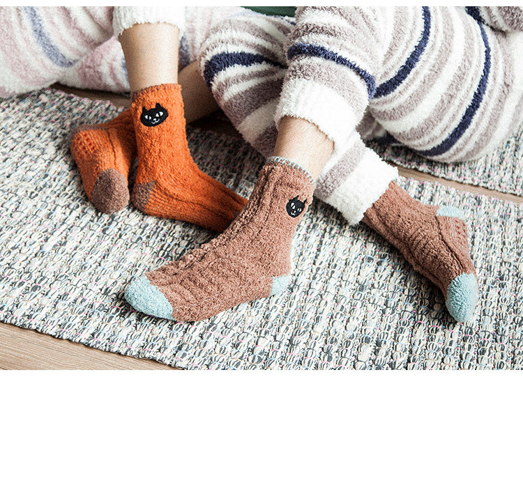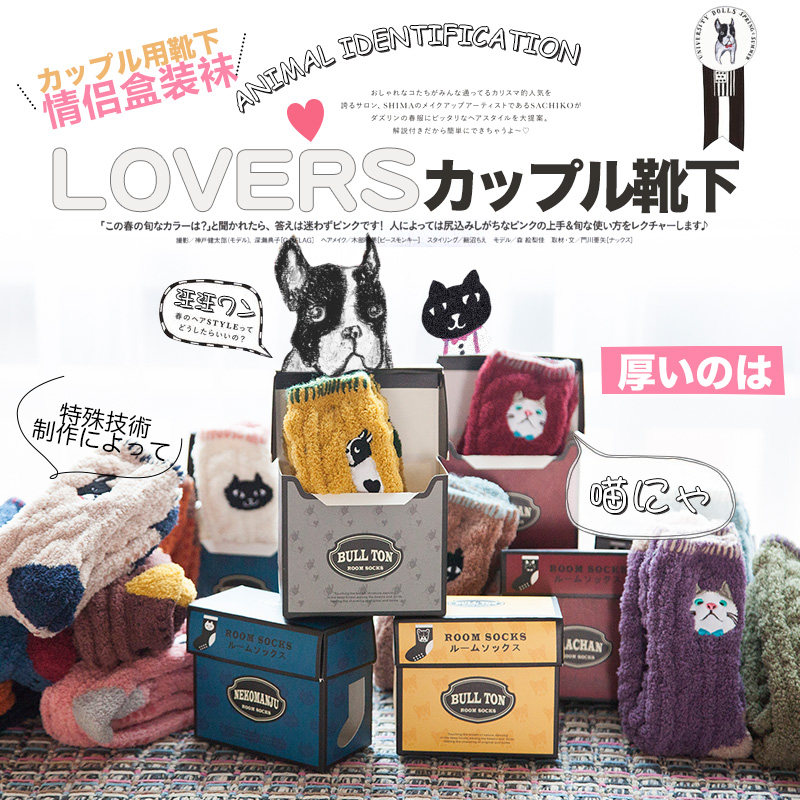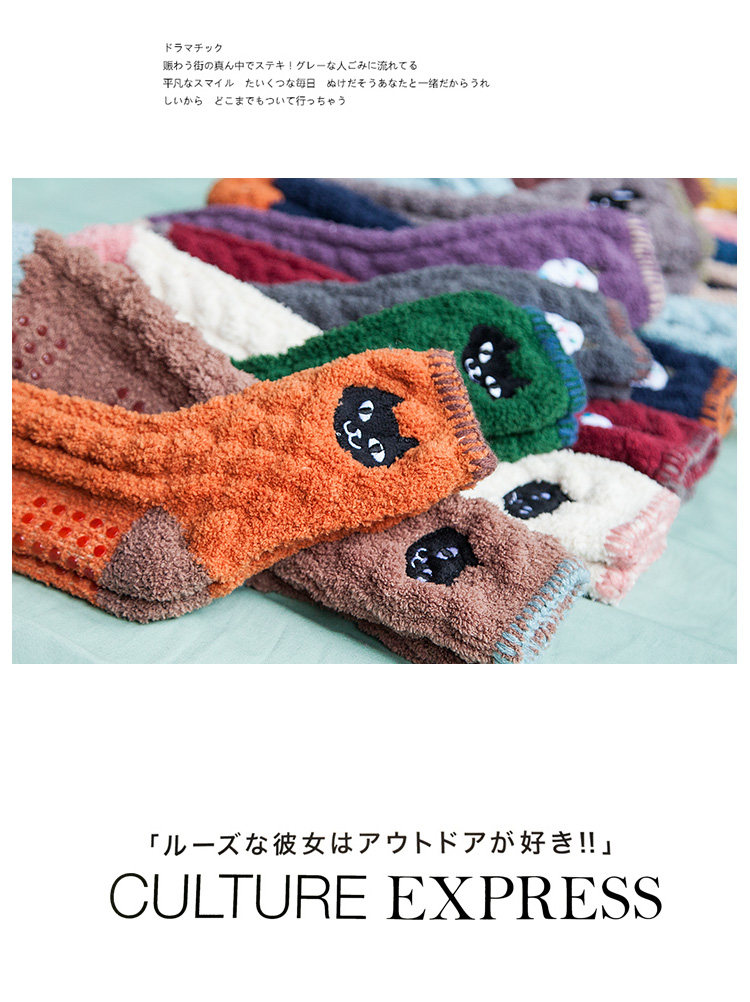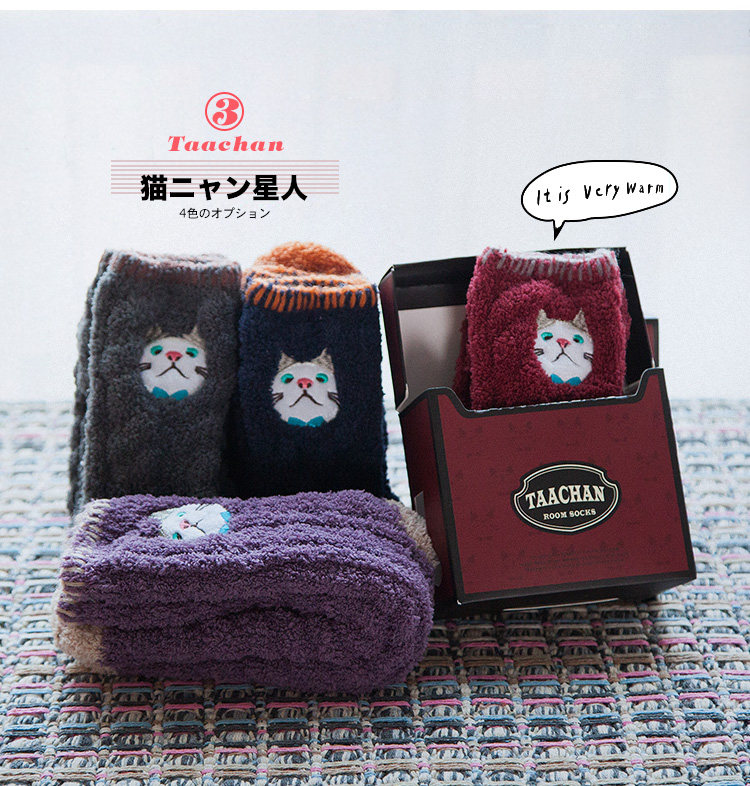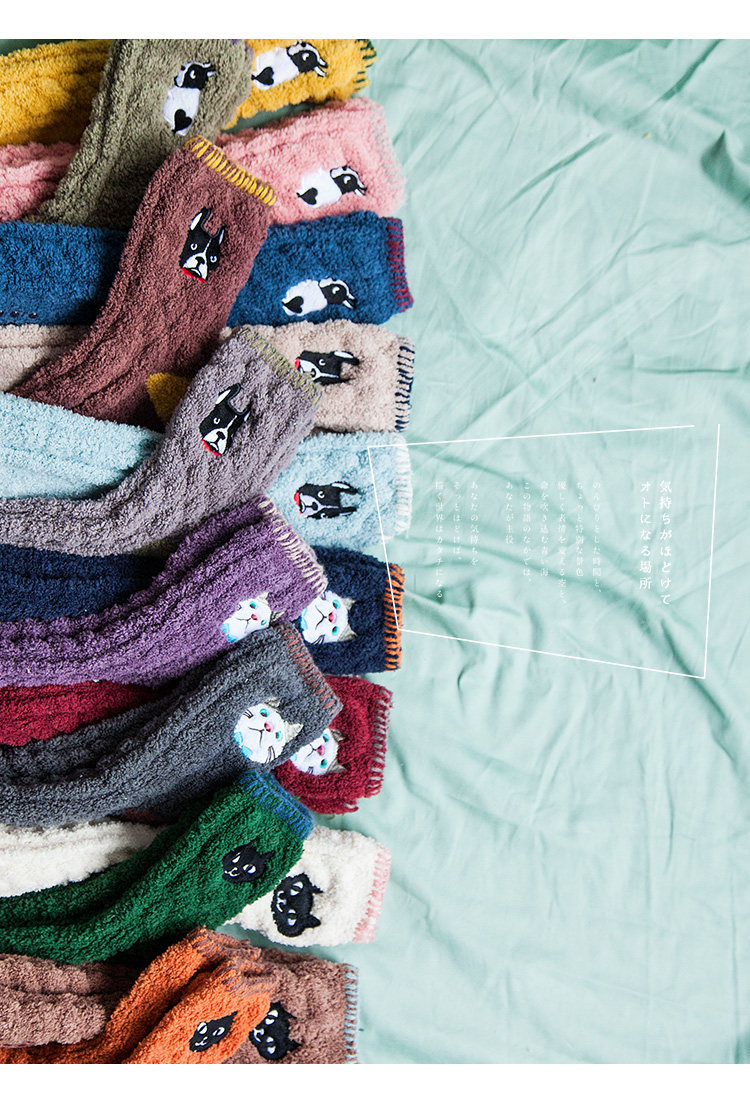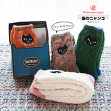 Осень и зимние японские покалывание мультипликационных животных против стекла напольных носков теплые коралловые бархатные пара мужчин и женщин спят носки
