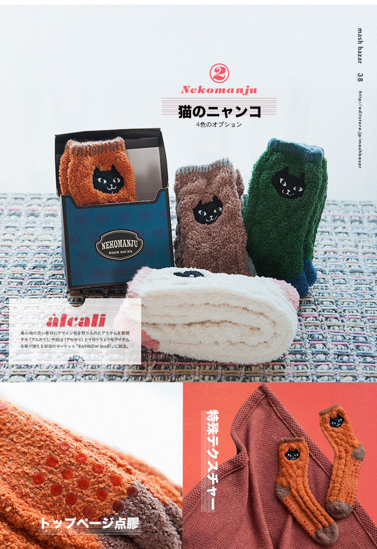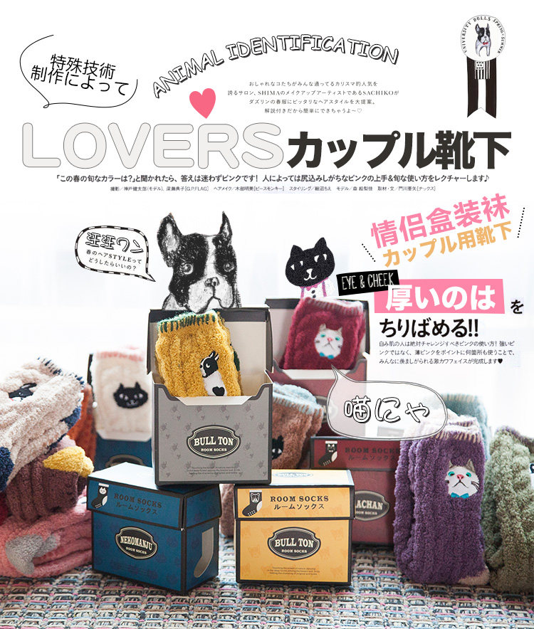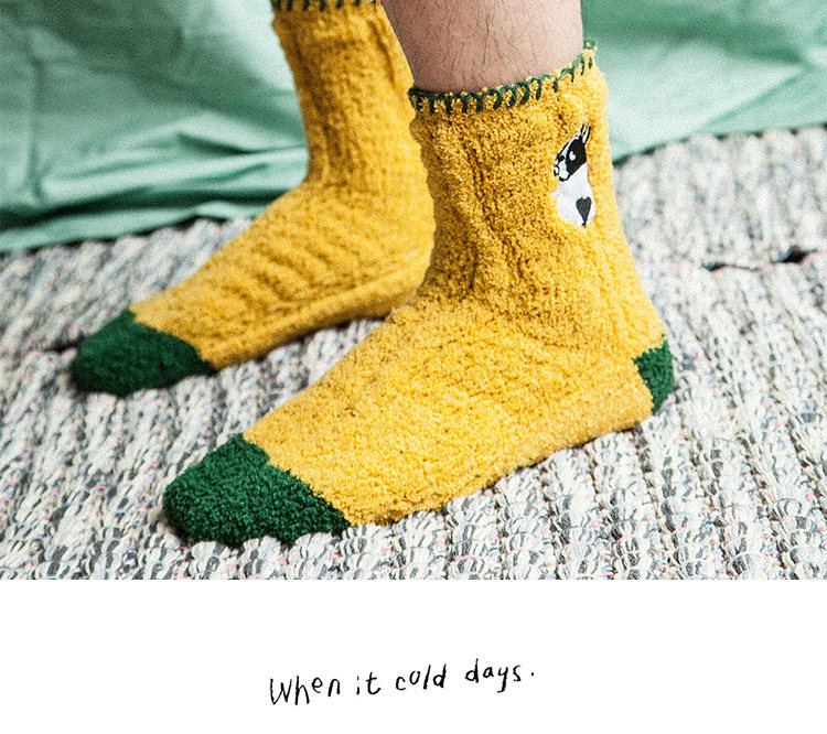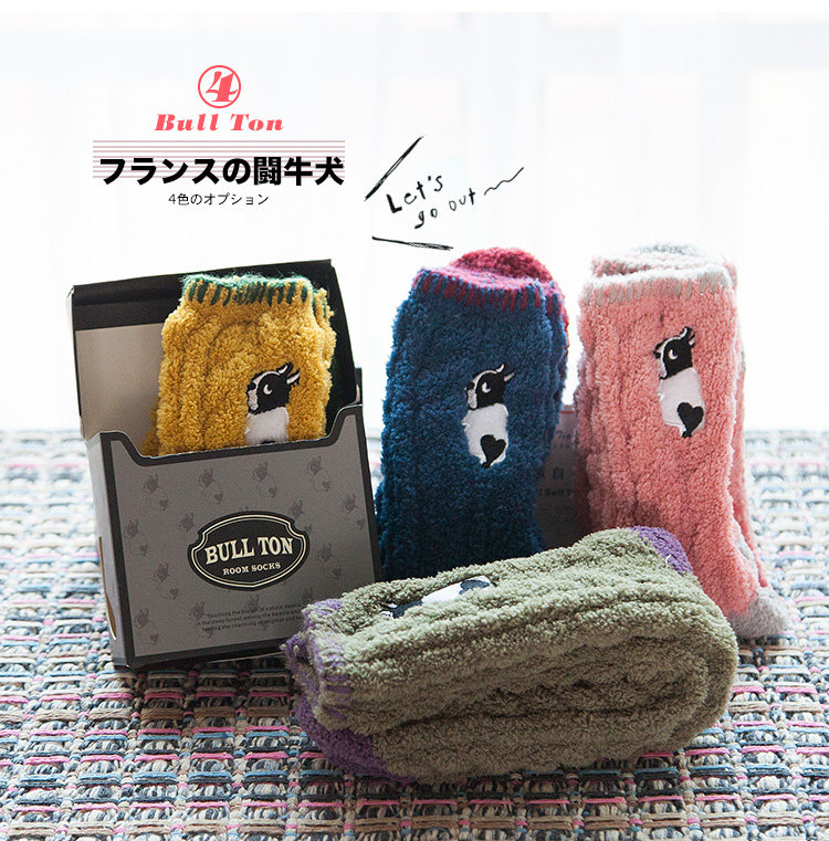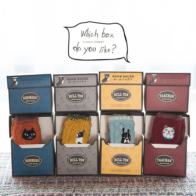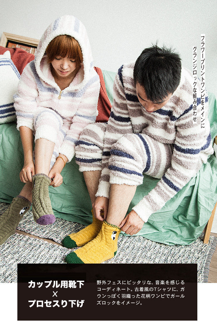 Осень и зимние японские покалывание мультипликационных животных против стекла напольных носков теплые коралловые бархатные пара мужчин и женщин спят носки