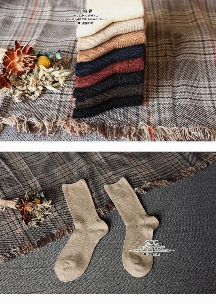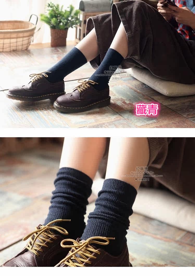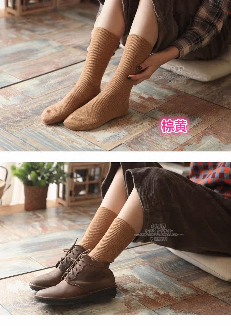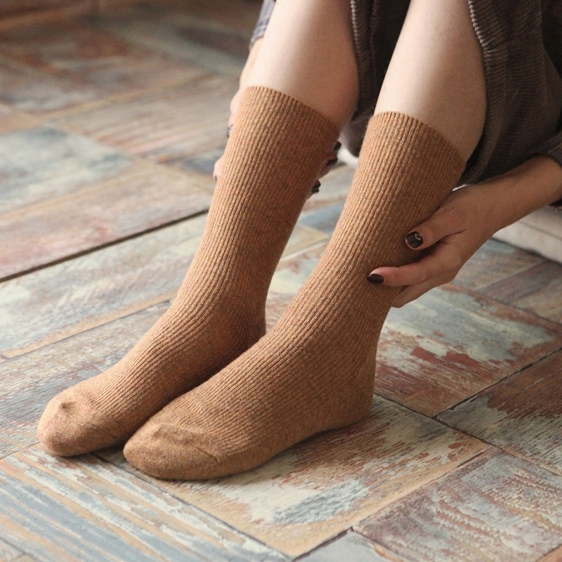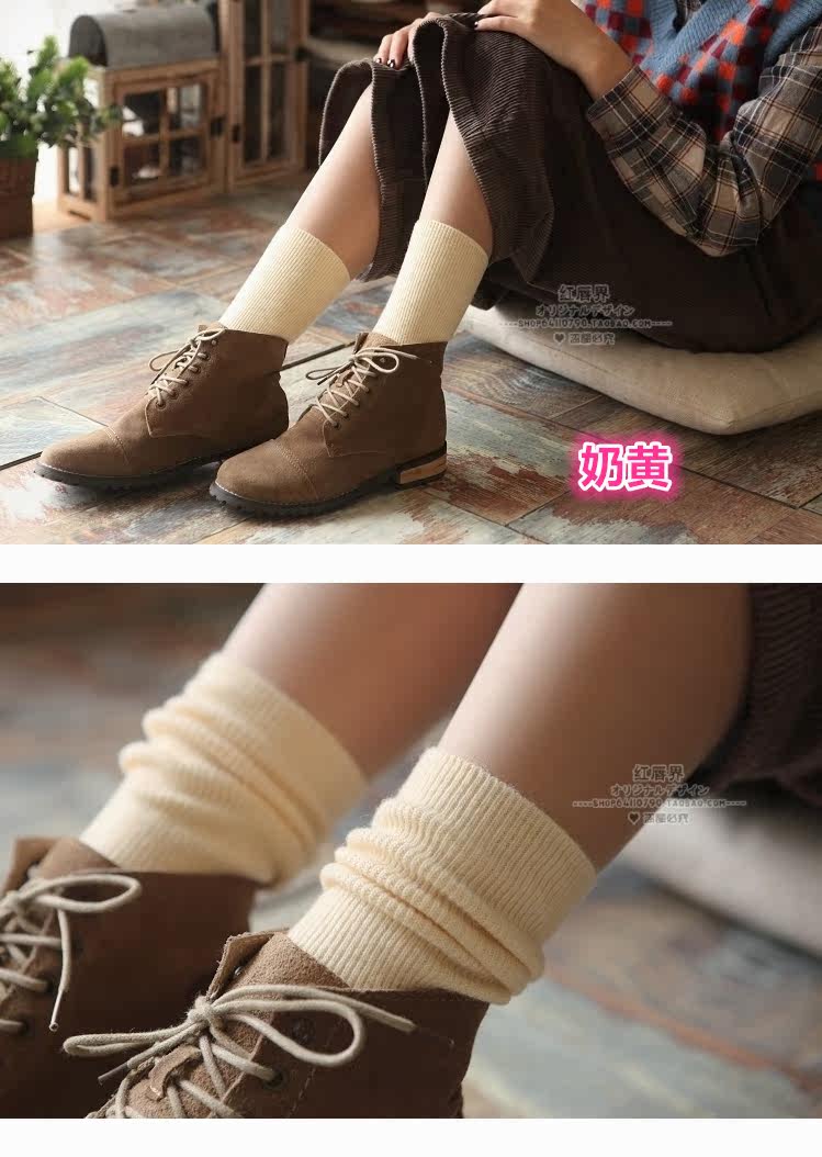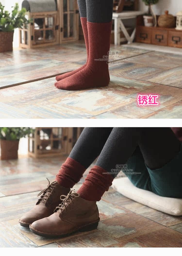 Зимние женские утепленные ретро шерстяные гольфы, демисезонные японские короткие сапоги, носки, средней длины
