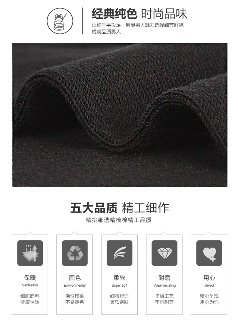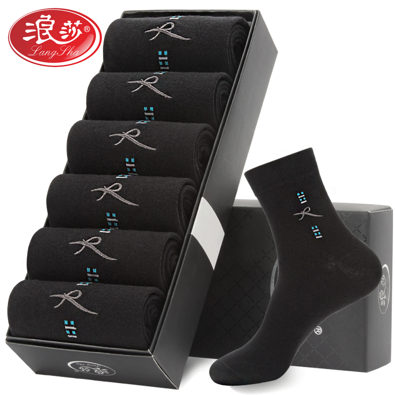 浪莎 Хлопковые демисезонные зимние черные носки, средней длины, увеличенная толщина, впитывают пот и запах