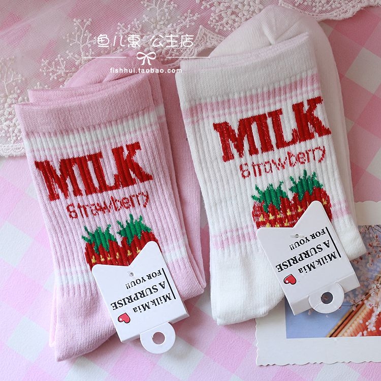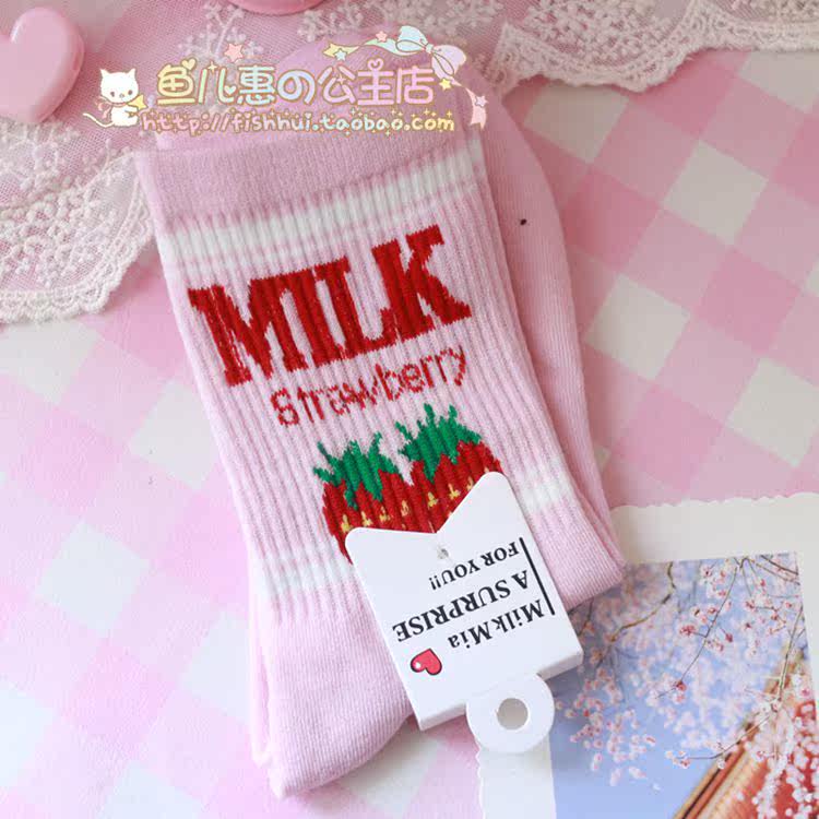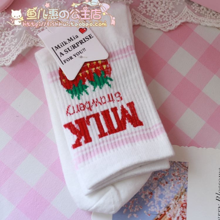 Симпатичная мягкая девочка маленькие клубничные буквы, молочная нить, носки для девочек, хлопковые дамы, дамы средней трубки носки
