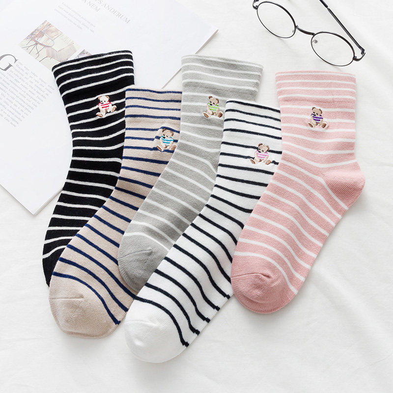 Демисезонные японские носки, мультяшные трендовые гольфы, с медвежатами, средней длины, в корейском стиле