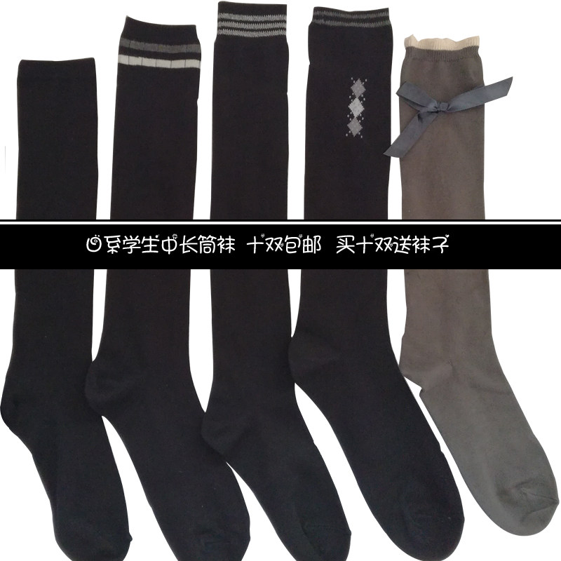 Нескользящие черные хлопковые японские гольфы для школьников и студентов, средней длины, косплей