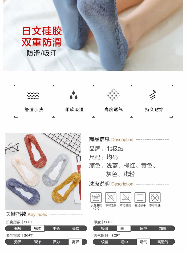 Летние тонкие дышащие невидимые цветные кружевные нескользящие носки