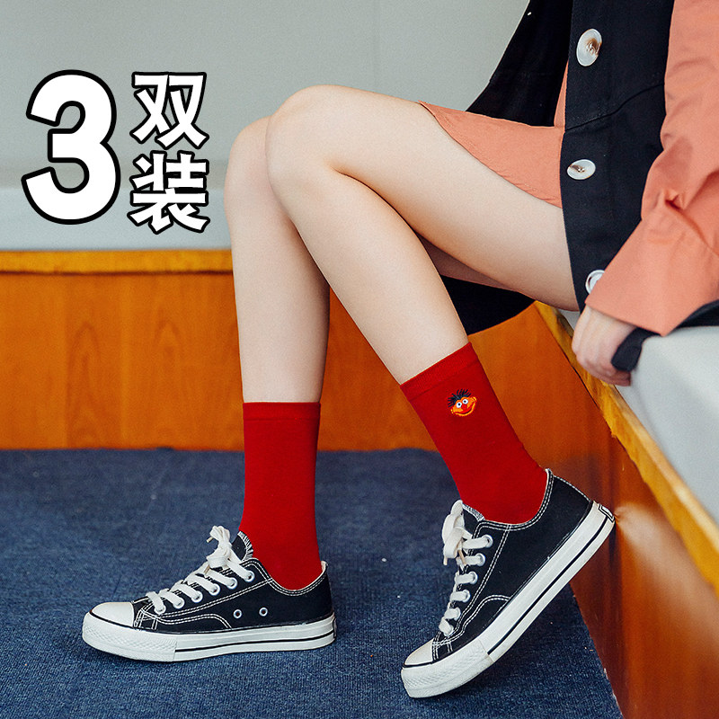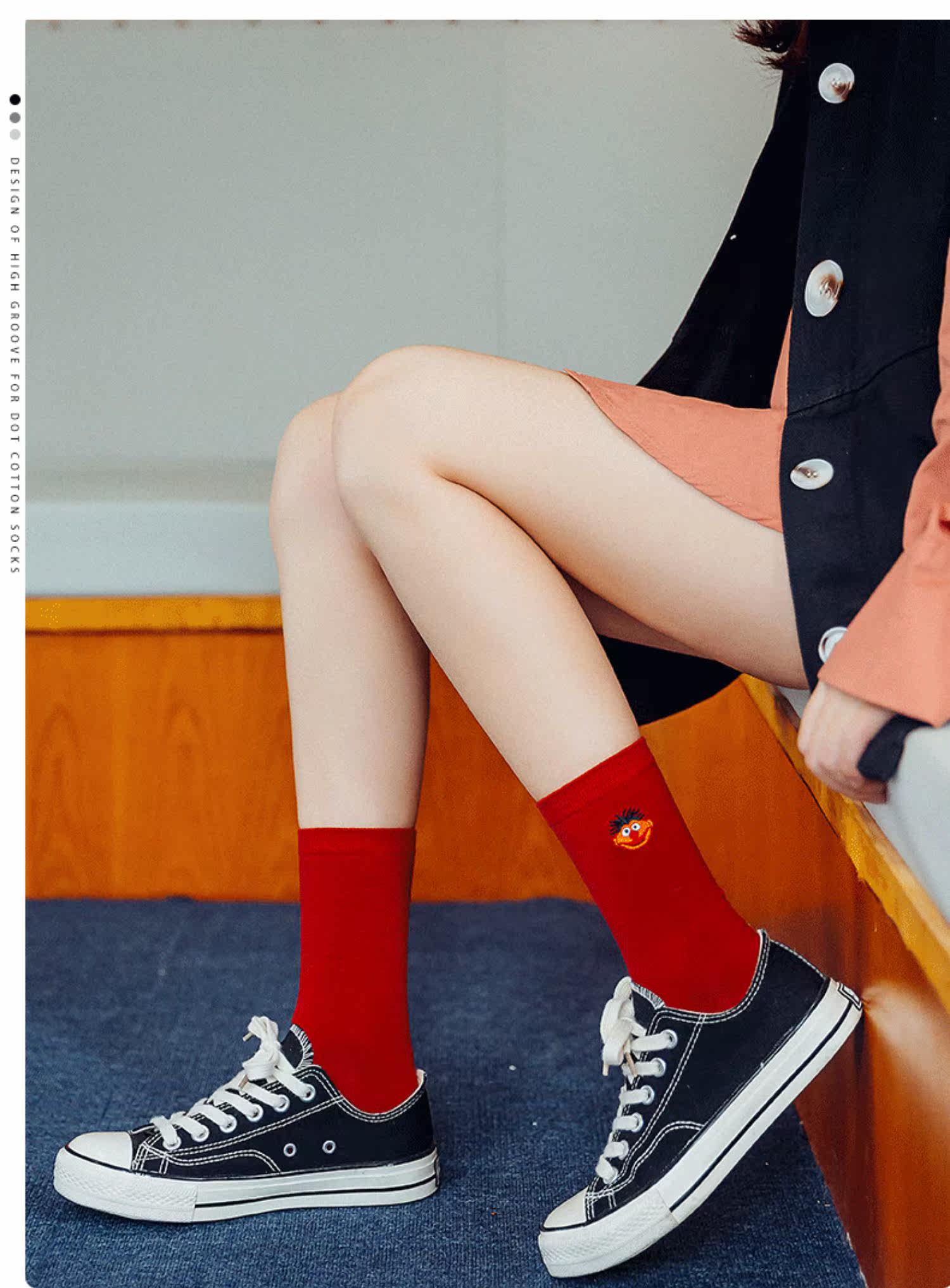 Носки, летние тонкие брендовые демисезонные красные гольфы, средней длины, в корейском стиле